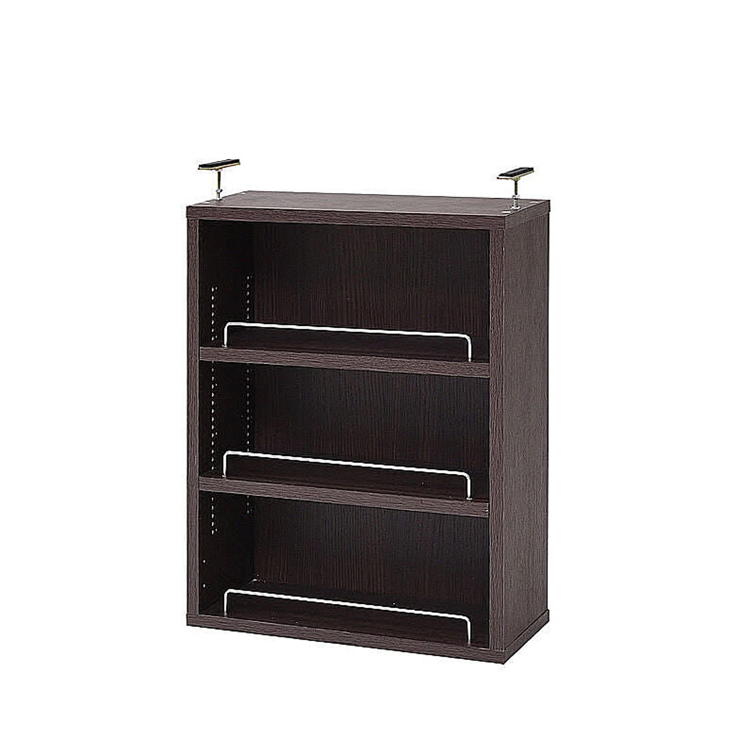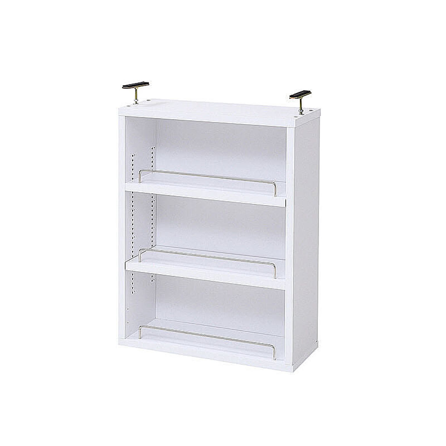 本体上の空間を有効活用する為の、専用上置き。本体同様に、1cm間隔で棚板が設置可能なので、様々なものが効率的に収納可能。薄型だからリビングだけでなく廊下や、狭いスぺースでも収納を確保できます。シリーズで揃えればまるで図書館。薄型幅41.5専用上置き