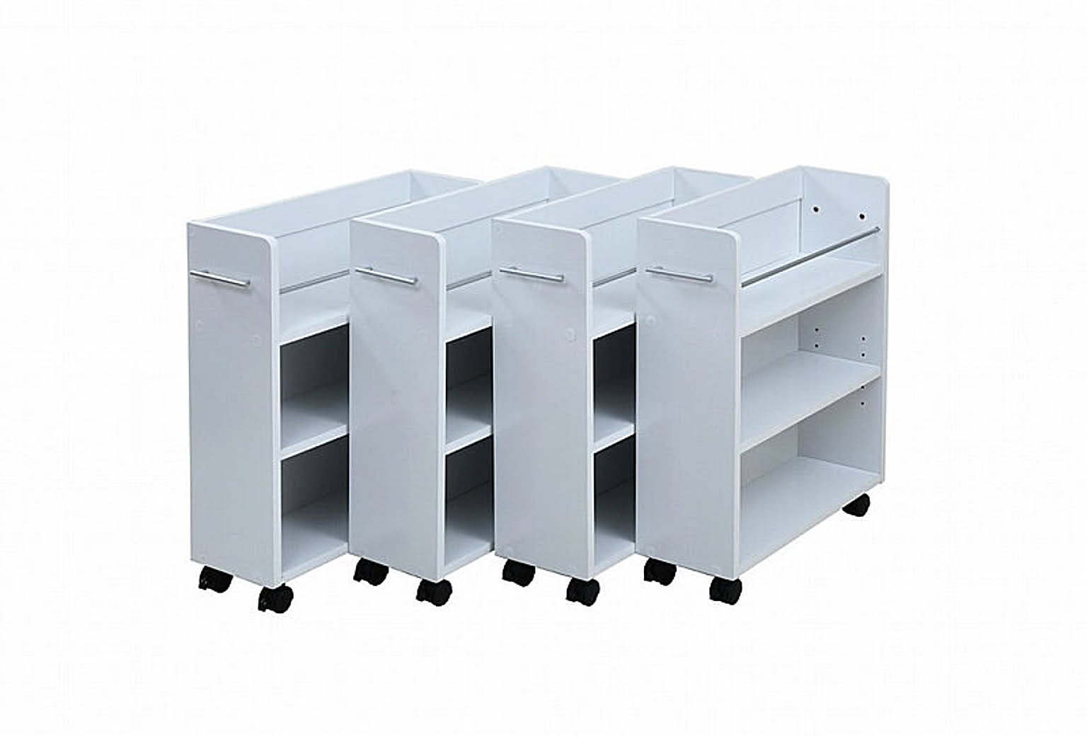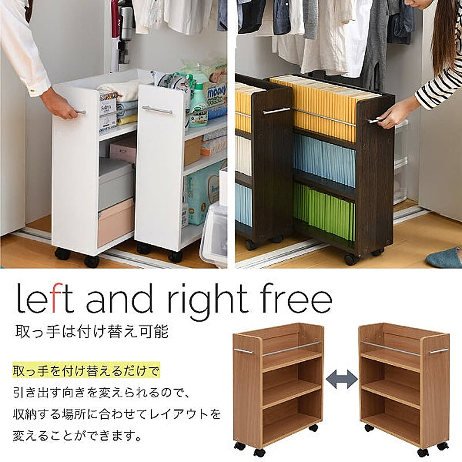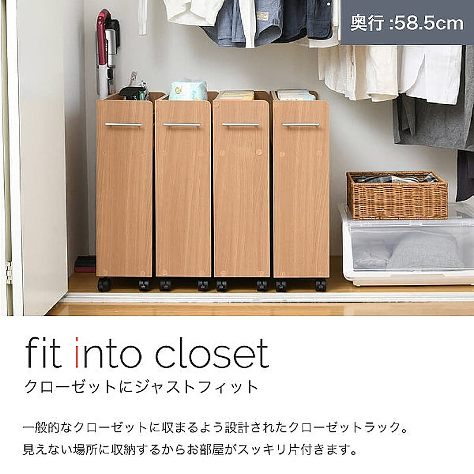 キャスター付きの便利なクローゼットラック4個組。取っ手はどちらにも取り付け可能なので、収納箇所の向きは左右入れ替えできます。本やメディア類や、日用品のストックなどの収納にぴったり。クローゼット内のスペースを有効活用するのでお部屋をすっきり片付けられます。