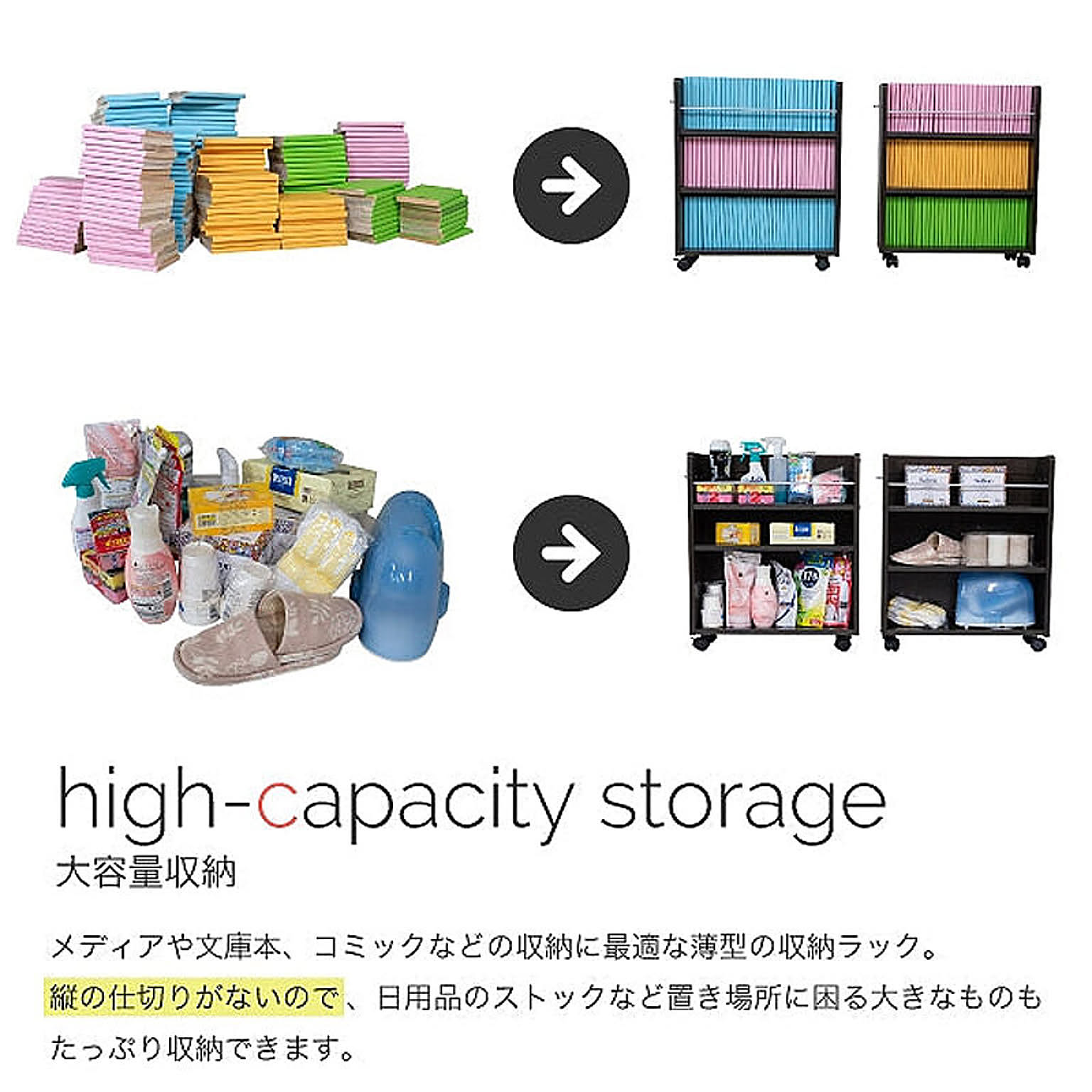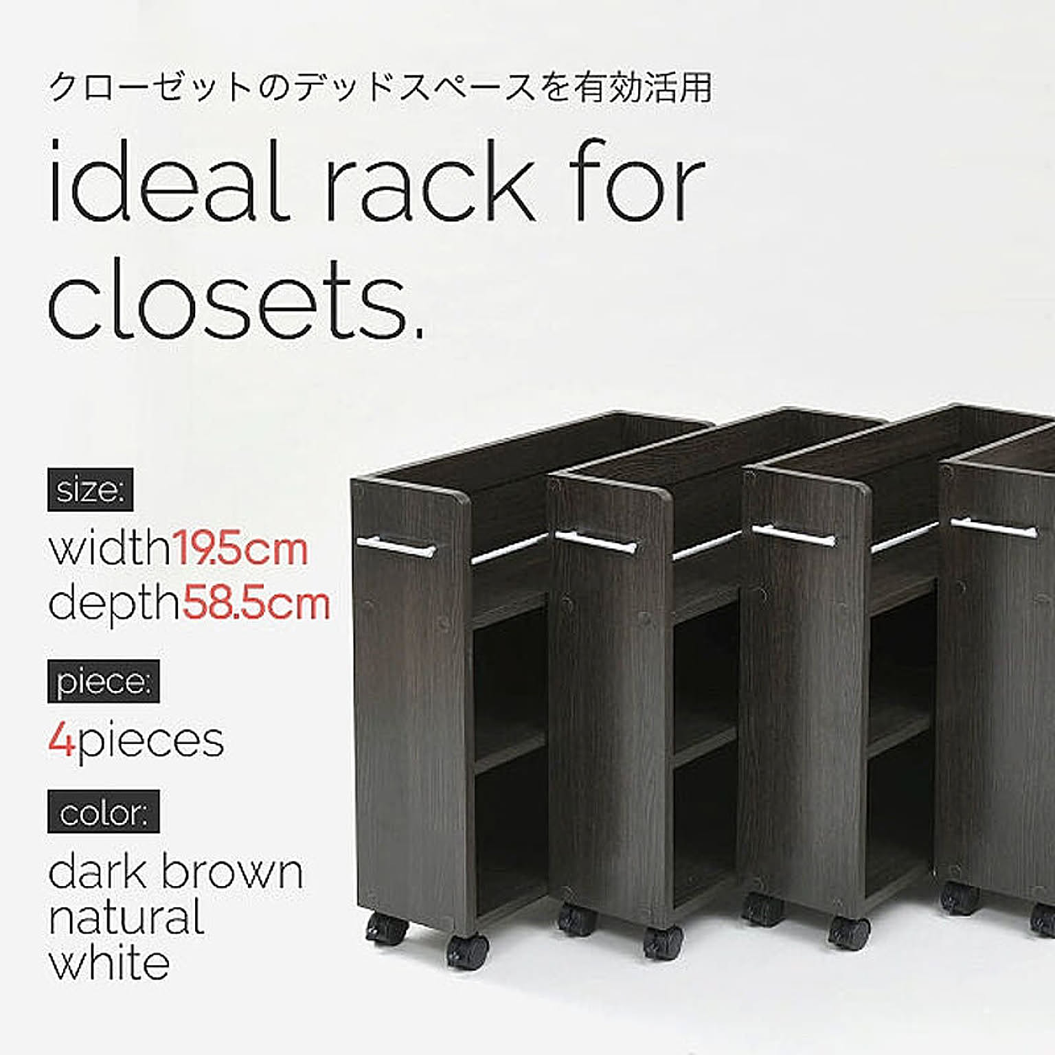 キャスター付き 収納 クローゼット ラック 4個セット 幅19.5奥行58 .5 スリム 押し入れ収納 本棚 ワゴン 隙間 収納 棚 漫画 CD DVD スライド シンプル コミック