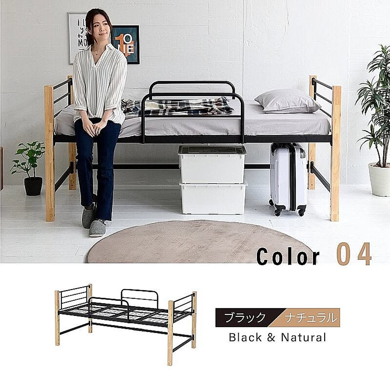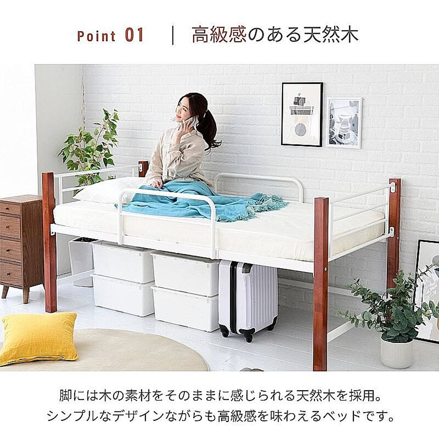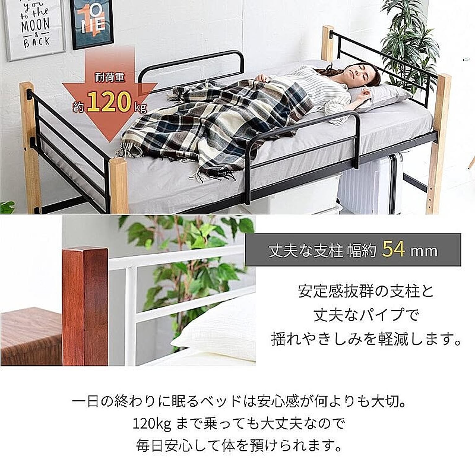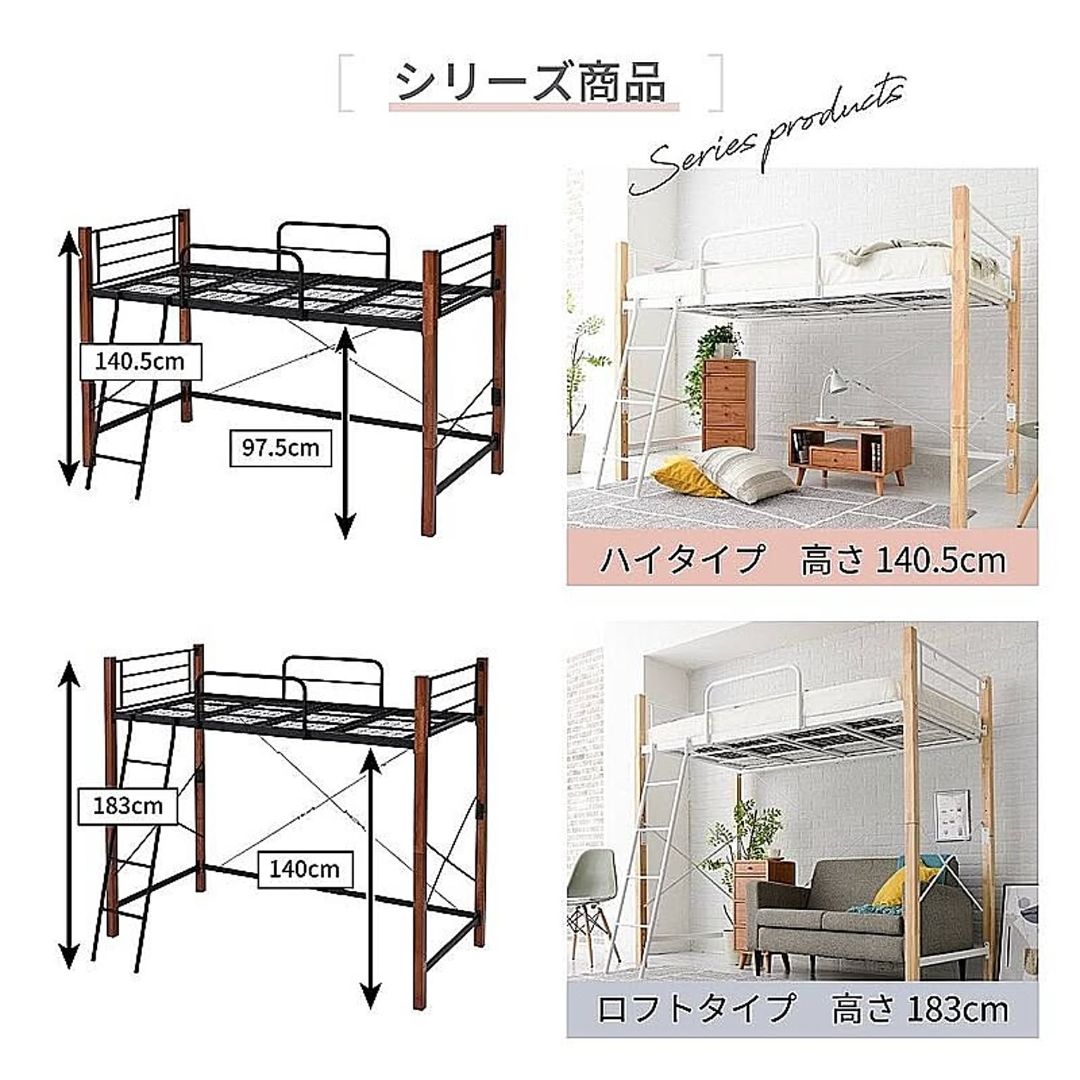 シングル ベッド 天然木 アイアン パイプ フレーム 高さ 96cm 幅 209cm 高め ハイタイプ ベッドフレーム 頑丈 ミドルベッド スチールベッド パイプベッド