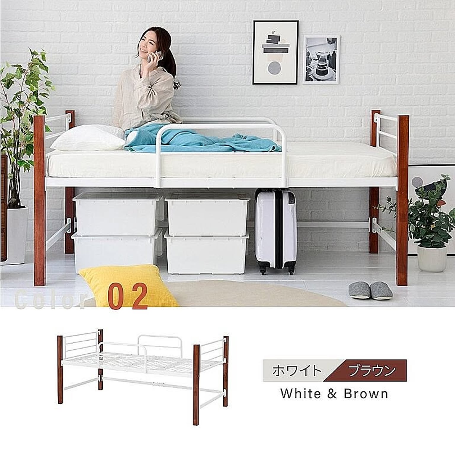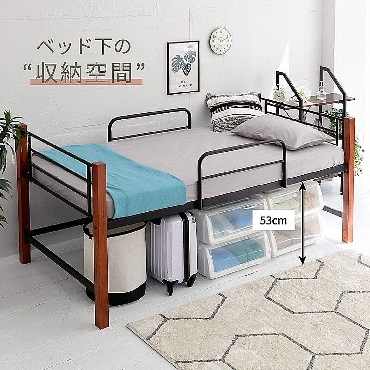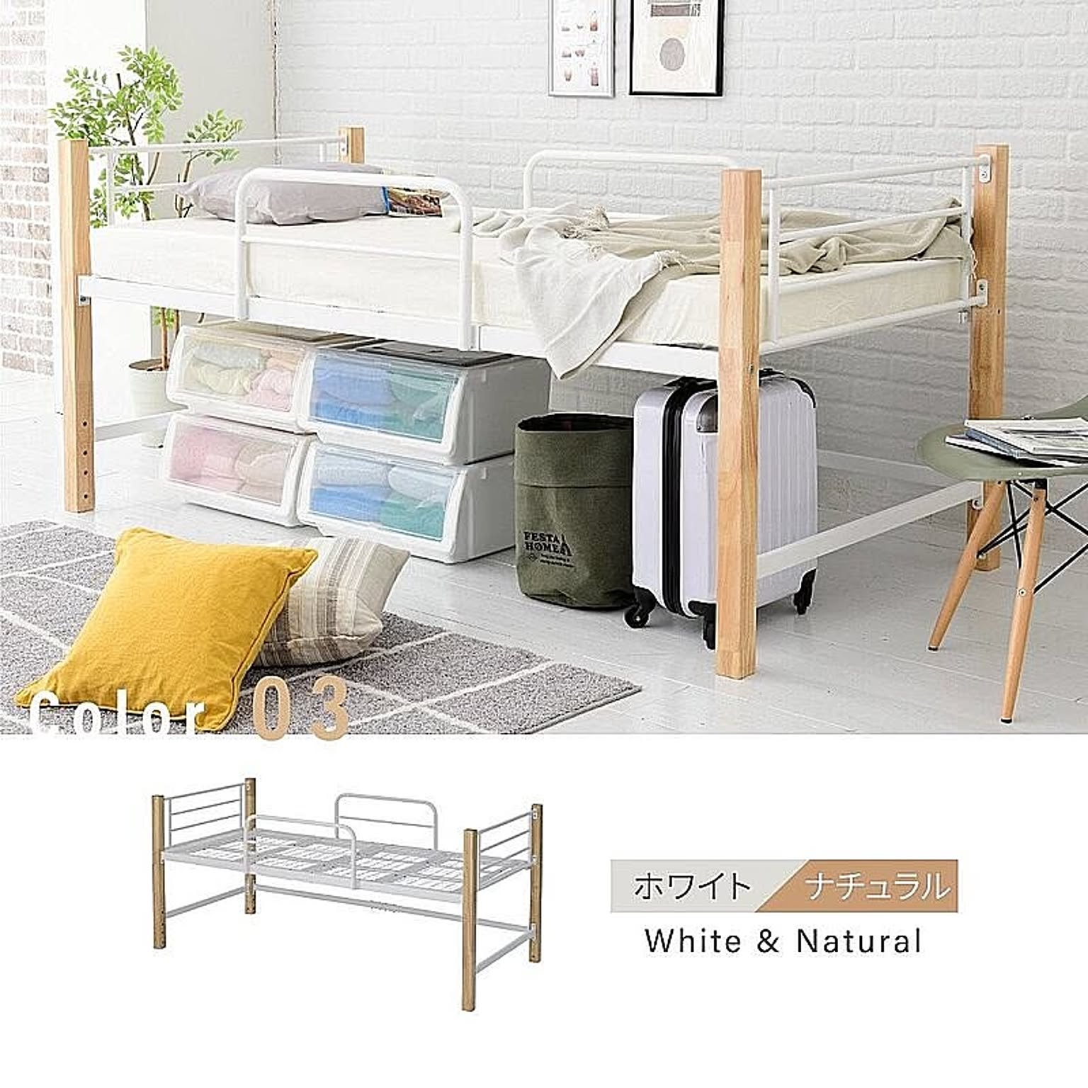 シングル ベッド 天然木 アイアン パイプ フレーム 高さ 96cm 幅 209cm 高め ハイタイプ ベッドフレーム 頑丈 ミドルベッド スチールベッド パイプベッド
