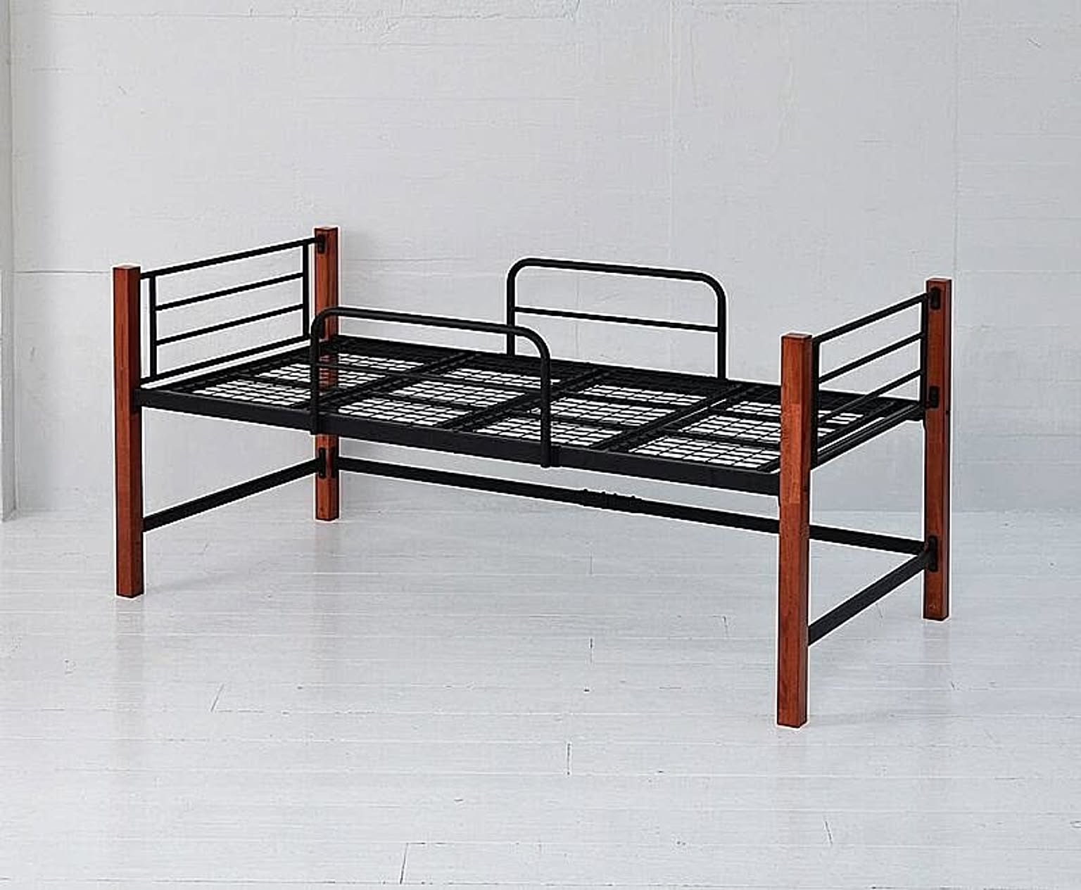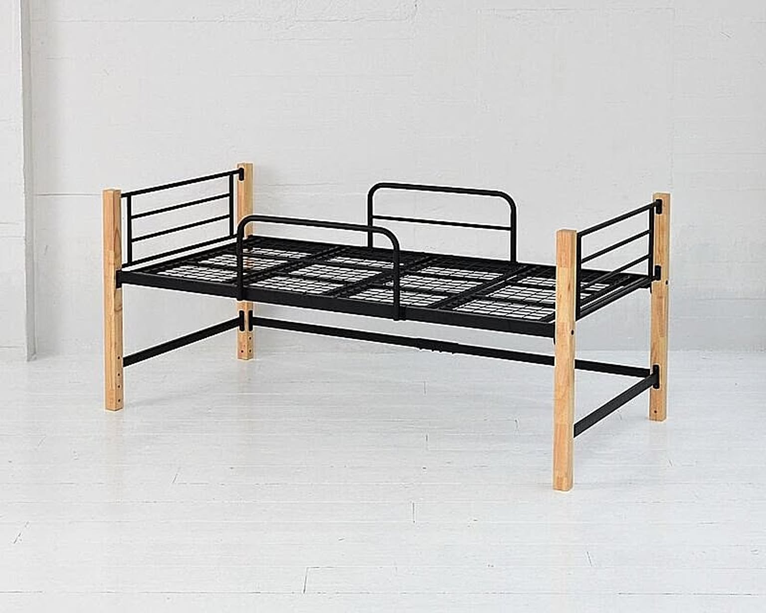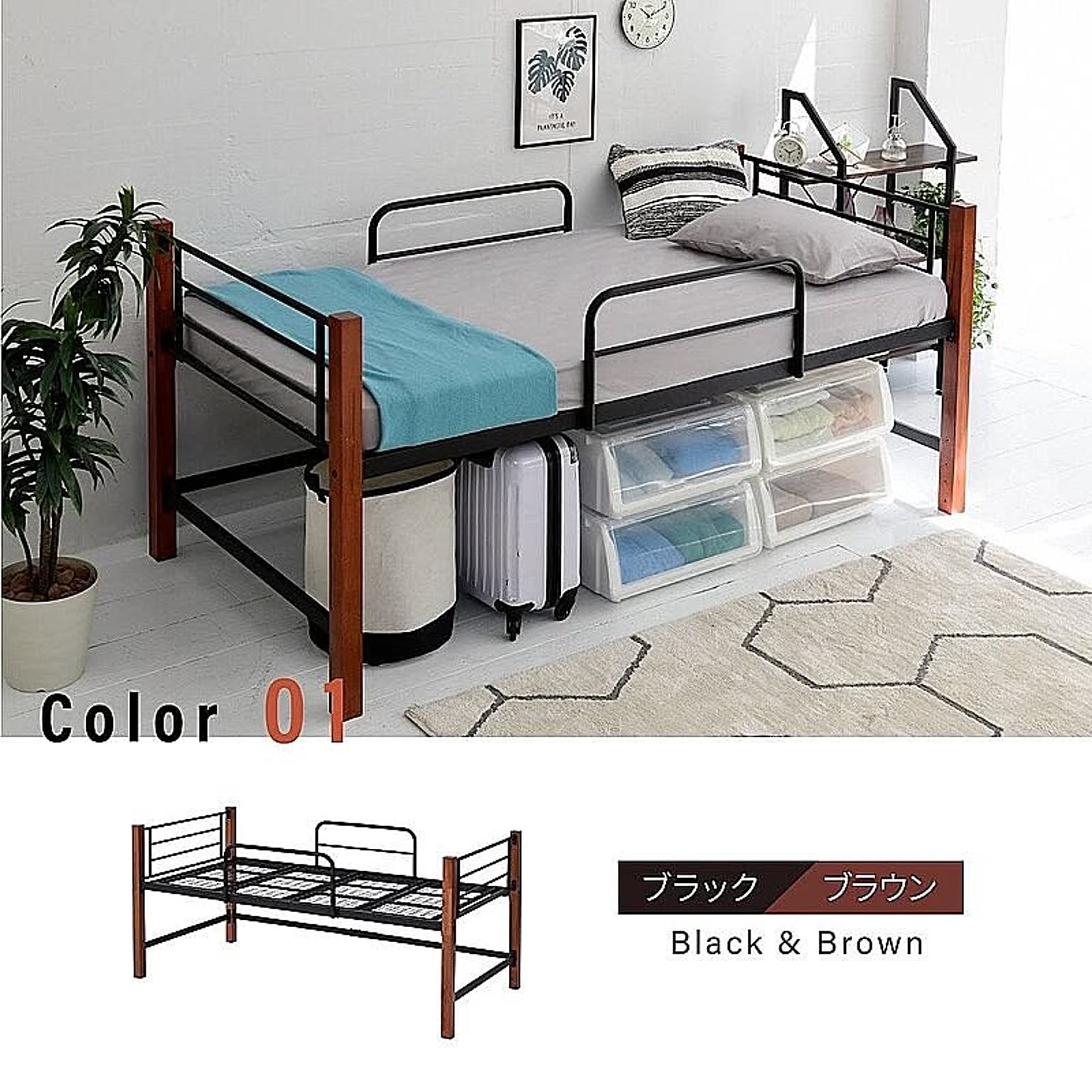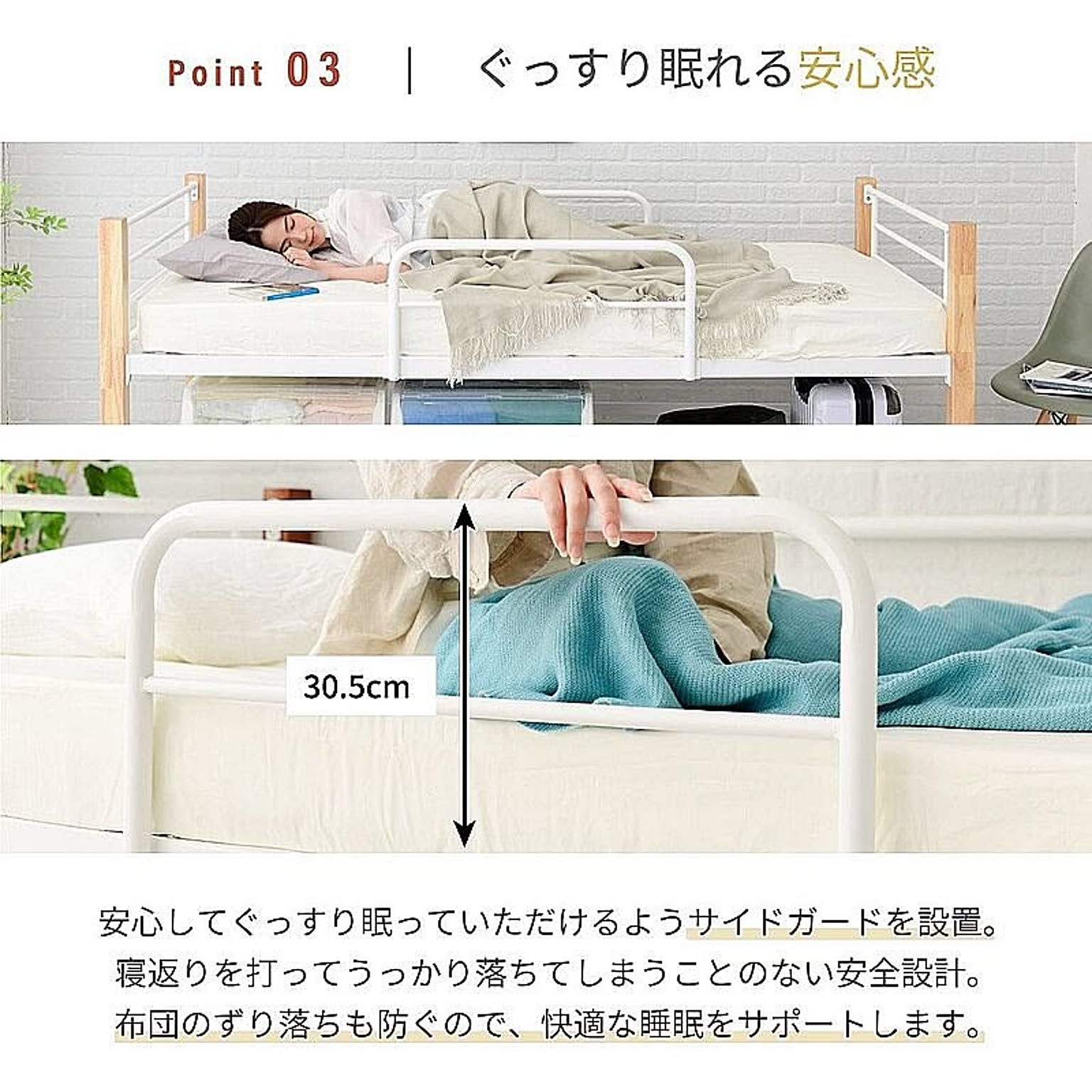 シングル ベッド 天然木 アイアン パイプ フレーム 高さ 96cm 幅 209cm 高め ハイタイプ ベッドフレーム 頑丈 ミドルベッド スチールベッド パイプベッド