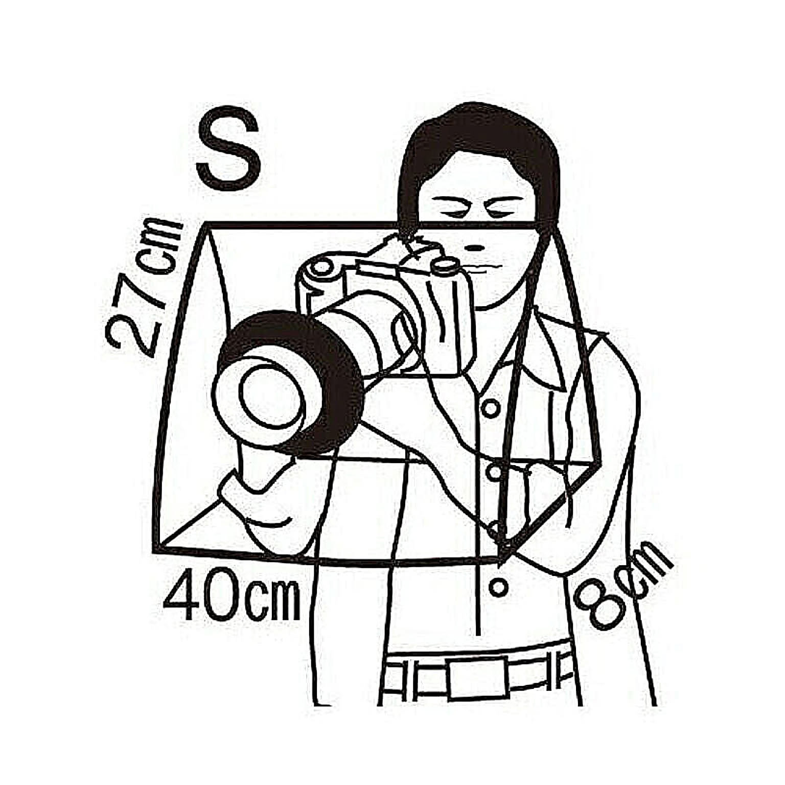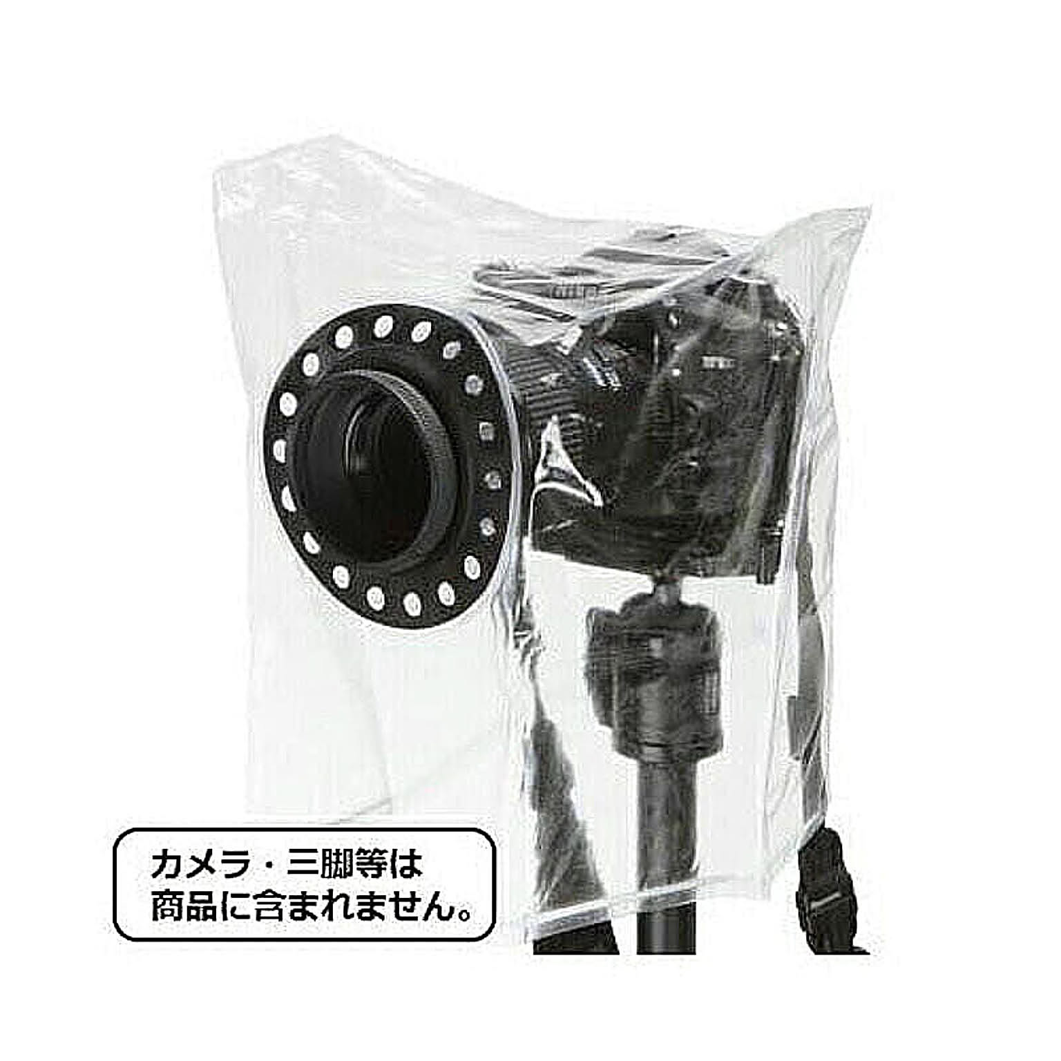 カメラレインジャケット S雨の日、雪の日、潮風の当たる海辺の撮影でもカメラを濡らす心配が無く、気温-10℃まで使用できる耐寒仕様のカメラ用プロテクターカバーです。伸縮自在なゴム製のレンズ窓から、レンズの先端部だけを外部に突き出して撮影します。外側に突き出したレンズフィルター枠にレンズフードを取り付けることにより、レンズ面への雨粒などの付着を防ぐことができます。テーマパークの放水ショー等で使用する場合は、開放部からの浸水に注意してください。●カメラのみを入れ、ファインダーや液晶画面をジャケット越しに覗きます。適合フィルター径 49mm?77mm