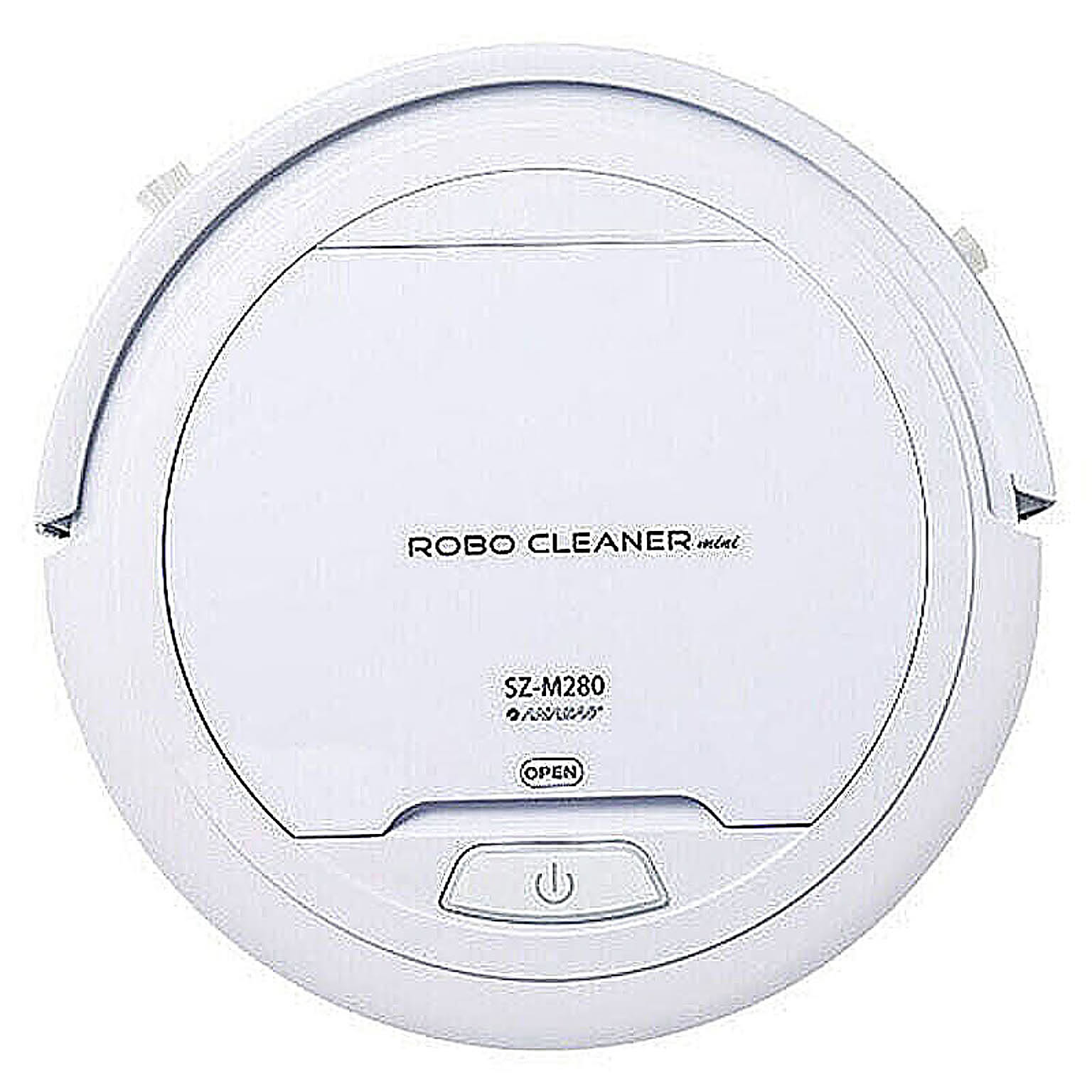 ロボットクリーナーmini操作はワンタッチの簡単操作。自動走行と段差検知機能で部屋全体を自動で掃除していきます。フロアーモップを付けてフローリングの床拭き機能付き。ダストケース、サイドブラシは水洗い可能。充電時間:約4.5時間、連続使用時間:最大約50分。集塵容量280ml。●サイズ:径28×7.5cm ●材質:ABS ●本体重量:約1.8kg ●生産国:CHN