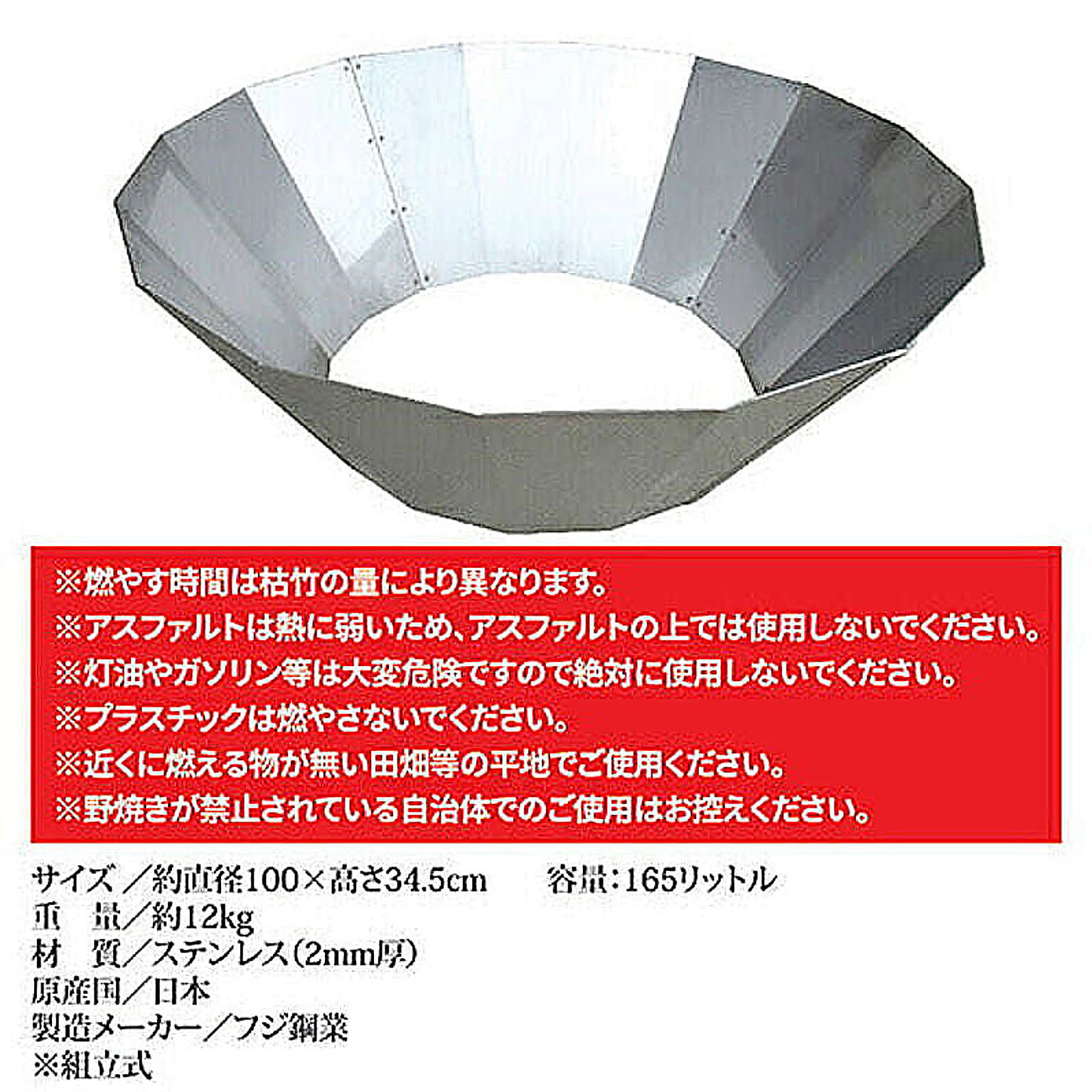 ※野焼きが禁止されている自治体でのご使用はお控えください。●サイズ:約直径100×高さ34.5cm 容量/165リットル
