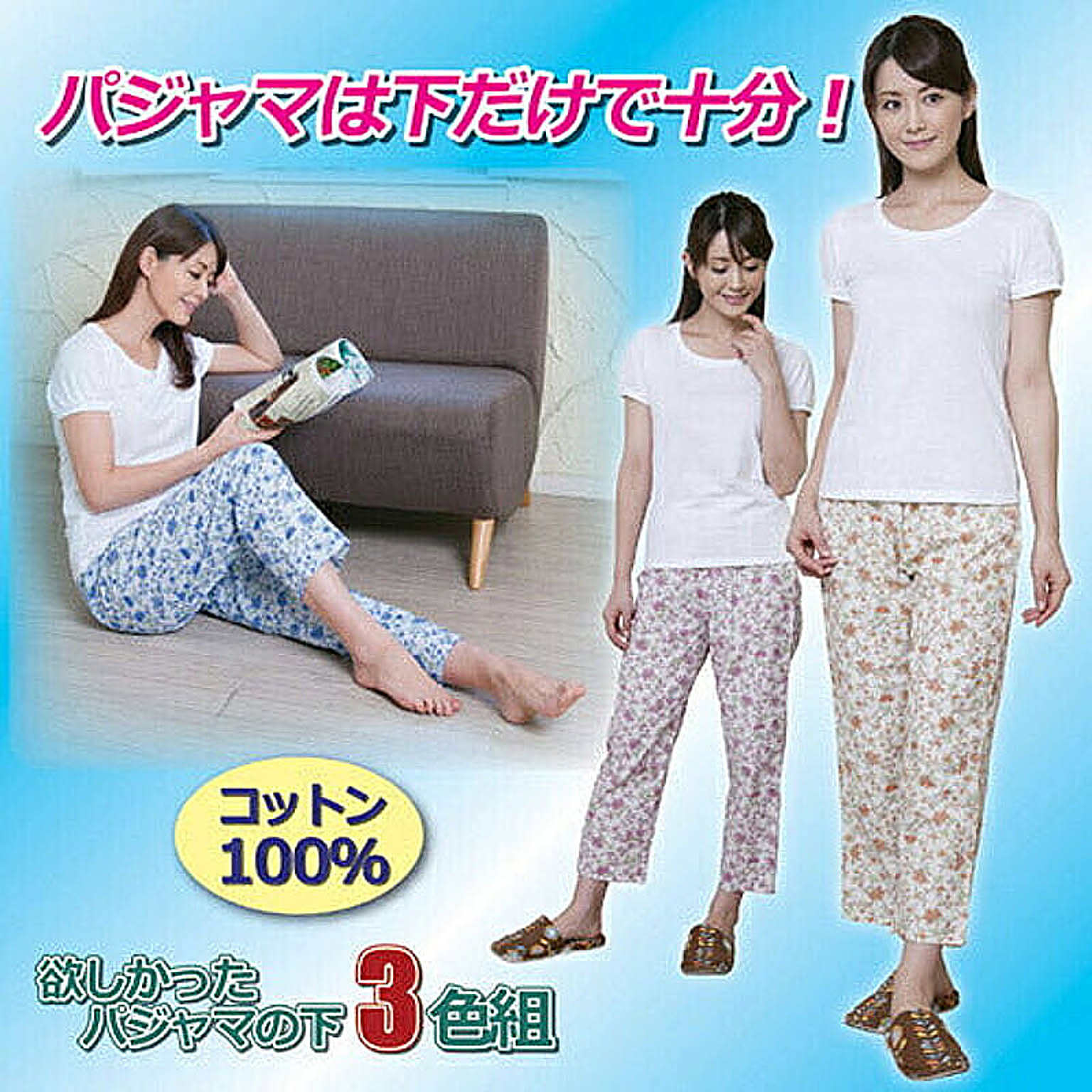パジャマは下だけで十分。●洗い替えに便利な3色セットで