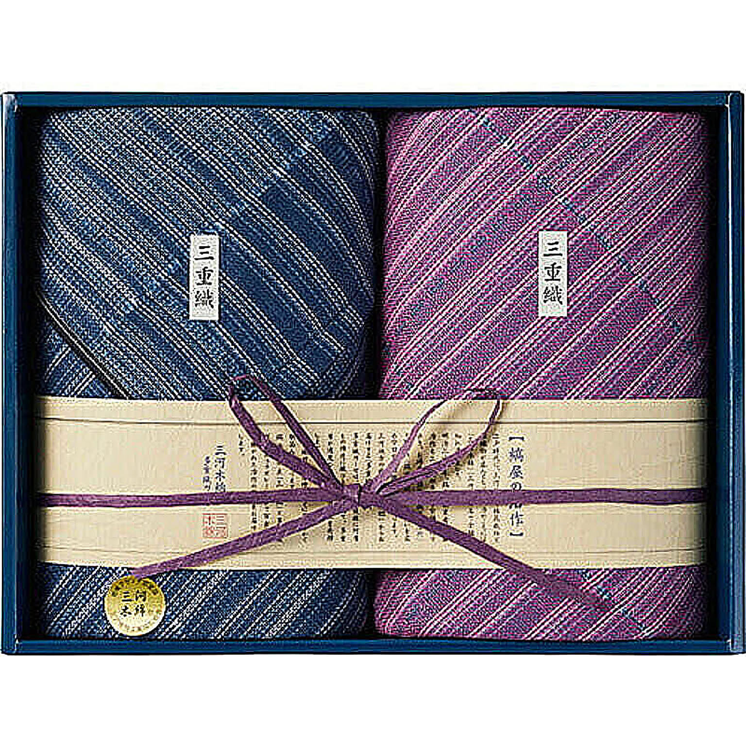 多重織ガーゼ フェイスタオル&ミニタオル江戸時代に、三河で綿栽培と綿織物が盛んとなり、明治には「三河木綿」「三河縞」の名で全国に知れ渡りました。明治22年、縞治の創業者、水藤治作も三河縞の木綿を全国に売り歩き、お客様から「縞屋の治作」と呼ばれ「縞治商店」として商いを広め、今日の「縞治株式会社」に至ります。三河の織物産地「蒲郡」からお届けする「多重織ガーゼ」を 「三河縞」にアレンジし、治作の思いをお届けいたします。●サイズ フェイスタオル 34×80cm、ミニタオル 25×25cm