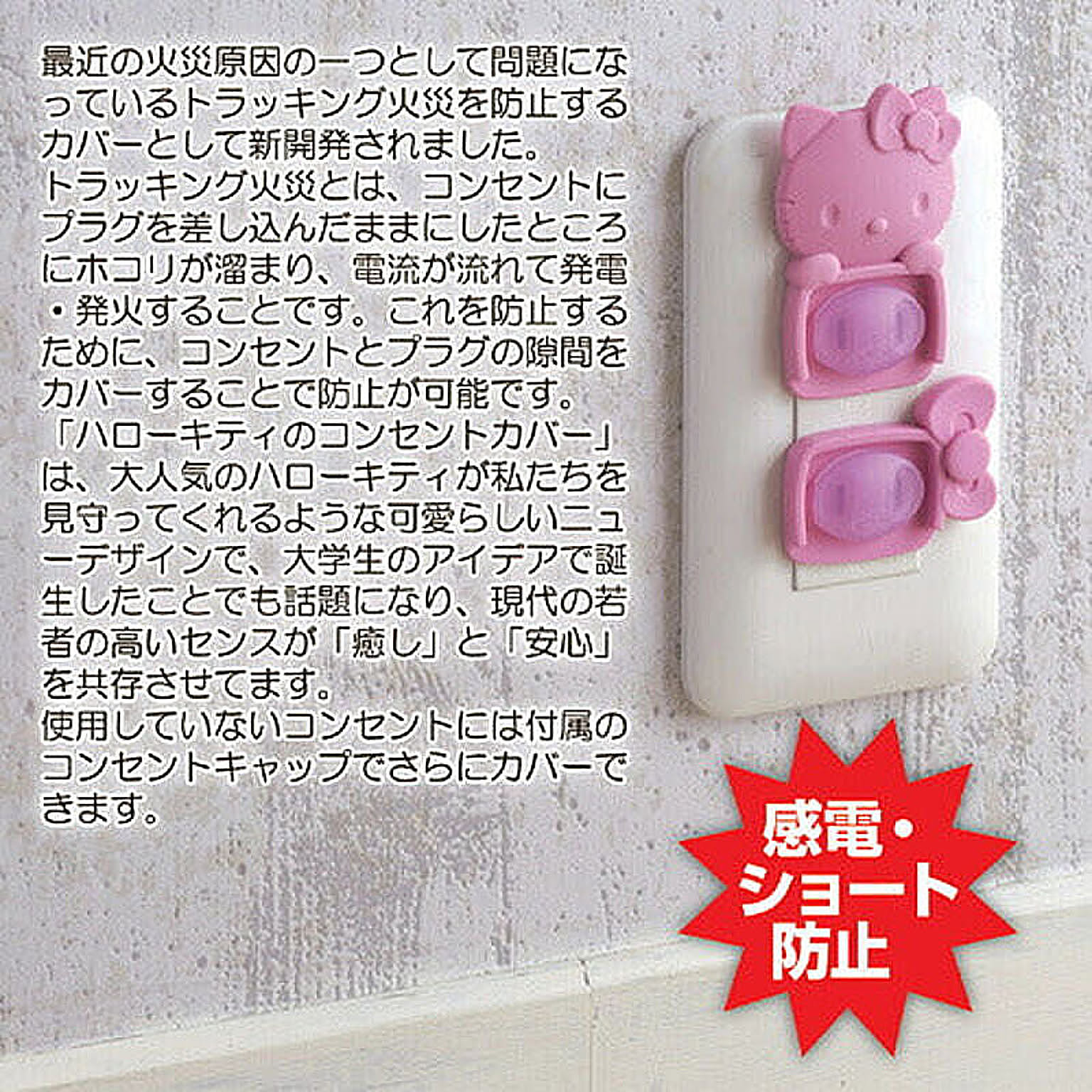 キティちゃんがコンセントをしっかりガード●ホコリと湿気からコンセントを守りトラッキングによる火災を防止●学生のアイデアで商品化されたコンセントカバー