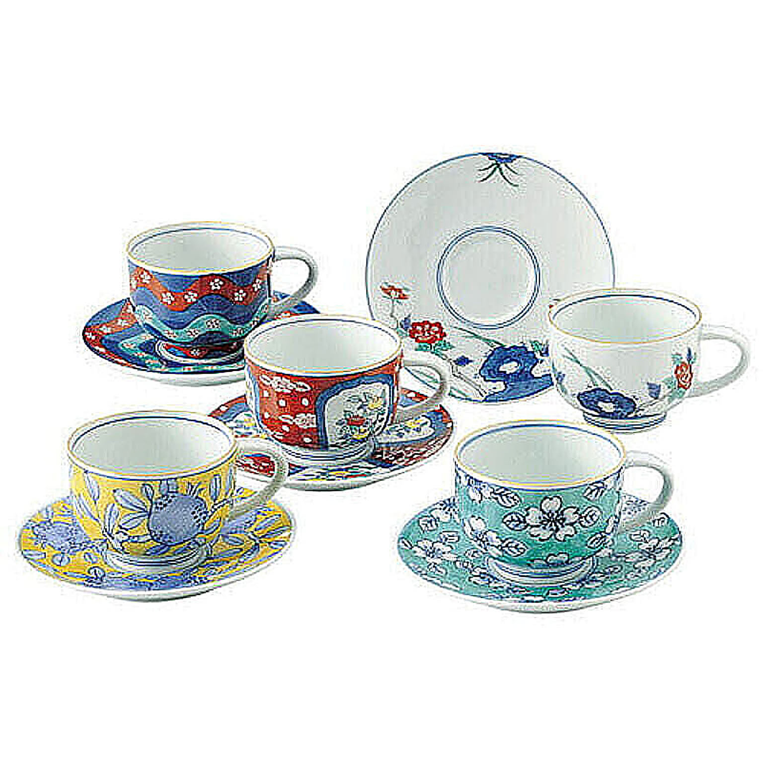 福丈作 染錦珈琲碗皿5客揃 管理No. 4948545295009