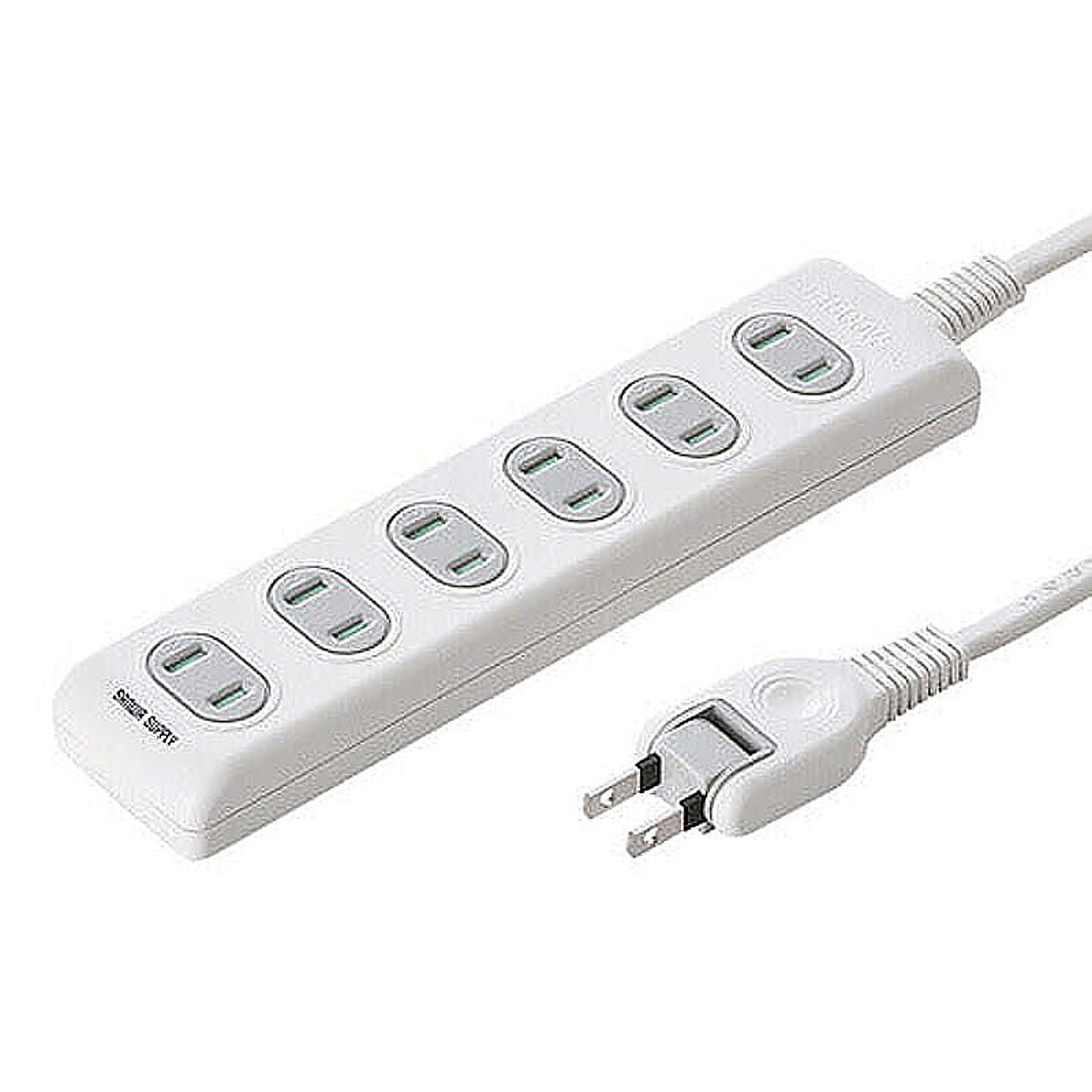 ホコリ防止シャッター、トラッキング火災予防の6個口安全タップです。●ほこりの侵入を防止するシャッターが付いて安全です。子供のいたずら予防にもなります。↓●恐ろしいコンセント火災を予防する絶縁キャップ付スイングプラグを採用しました。↓●安全性、信頼性を向上させた保護被ふくコードを使用しています。↓●鉛などを使用しないRoHS指令に対応した製品です。↓●接続した機器を記入できるネームタグ付きです。↓↓↓↓↓↓↓↓■定格容量/15A・125V(1 500Wまで)
