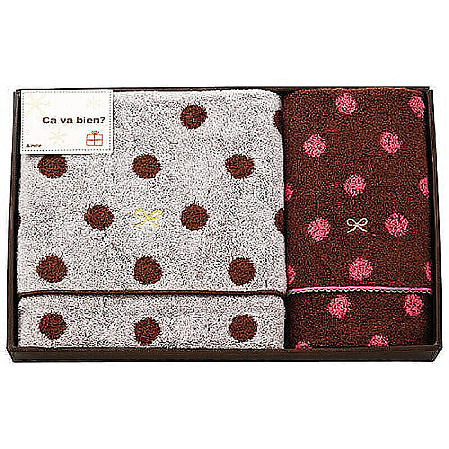 バス・フェイスタオルセットサヴァビアン。思わキュンとくる大人かわいいドット柄のデザイン。●60×120cmバスタオル1枚 ●34×80cmフェイスタオル1枚 ●綿100% ●[中国製 ●43×28×5cm ●80サイズ ●約650g