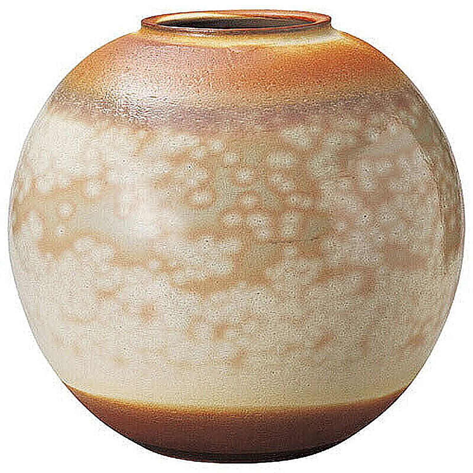原節夫作 緋色窯変壷萩焼陶芸家 原節夫作。胴回りだけに釉薬を掛け、微妙に変化を見せる窯変壷です。●サイズ 径30×28cm ●材質 陶器 ●本体重量 約5kg ●生産国 JPN ●注釈 ※手づくり品のため、色・サイズ等が多少異なる場合があります。
