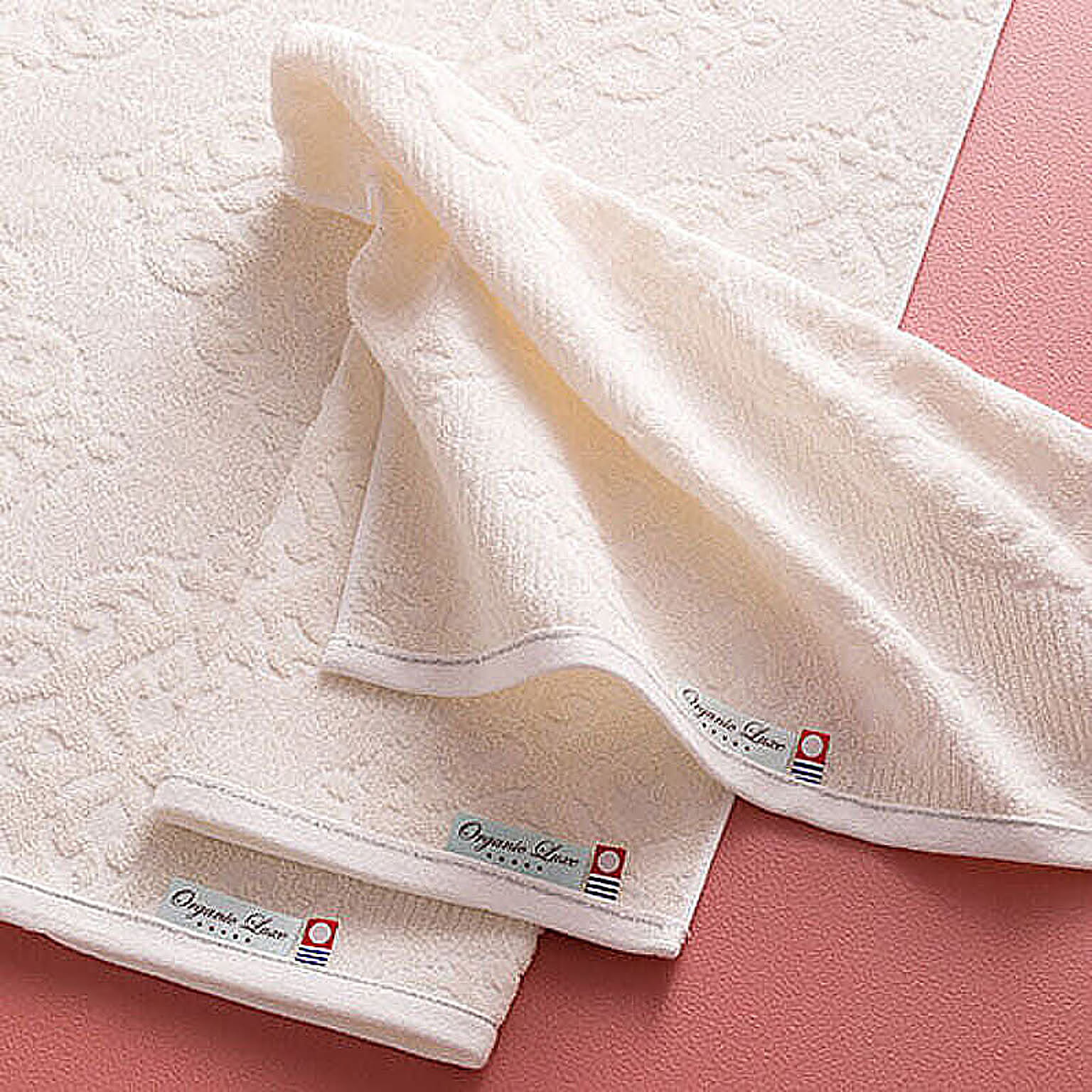 オーガニックリュクス・5つのこだわり ★今治の歴史ある機屋(創業1931年)が手掛けるこだわりタオル ★認証・インド産オーガニックコットン使用 ★薬剤を抑えた無蛍光タオル ★今治が誇るタオルソムリエ監修 ★ジャガード織りを活かしたホテル仕様34×70cmフェイスタオル2枚・綿100%[日本製]