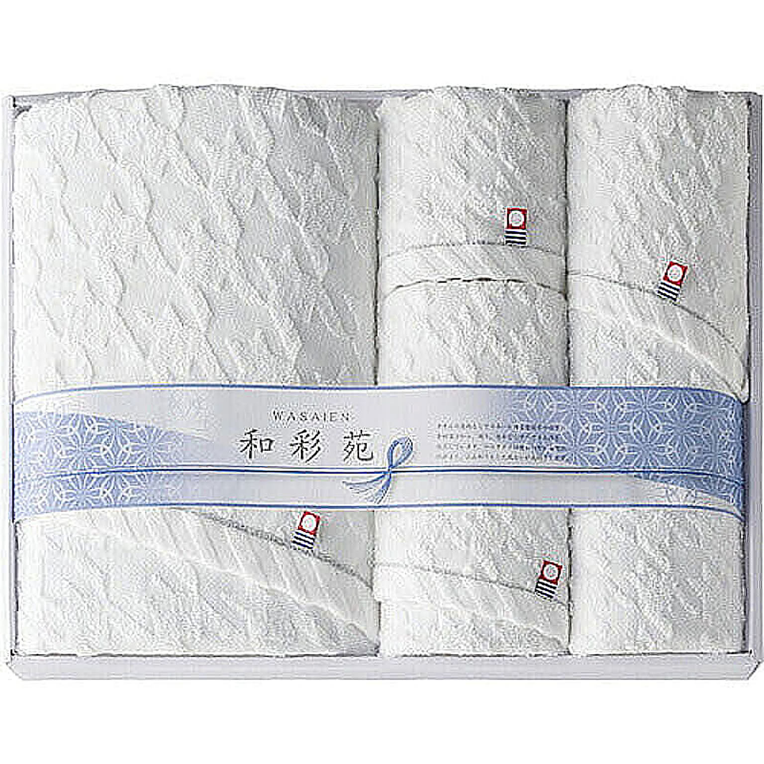 タオルセット真っ白な今治タオルに浮かび上がる千鳥柄。真っ白な生地に立体的に浮かぶ千鳥柄。今治タオルならではの高品質なジャガード織りで美しい伝統柄を表現しました。今治の職人が織り上げたタオルはすぐれた吸水性とやさしい使い心地を実現しています。●材質:綿100% ●セット内容:フェイスタオル(34×75cm)×2、バスタオル(60×120cm)・ウォッシュタオル(34×30cm)×各1 ●箱サイズ:30×39×4cm ●原産国:日本 ●機能・特長:日本製 ●箱入重量:0.64kg