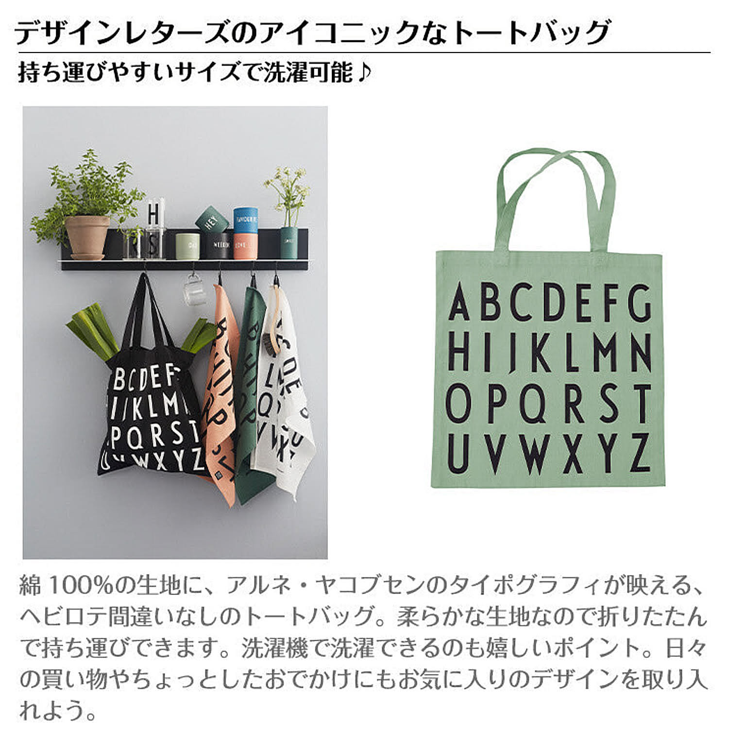【特徴】綿100%の柔らかな生地に、アルネ・ヤコブセンのタイポグラフィが映える、ヘビロテ間違いなしのトートバッグ。洗濯機で洗濯可能なのも嬉しいポイント。 【サイズ】W41.5×D2×H44 取っ手の長さ:52㎝ 【素材】綿 100% 【原産国】インド