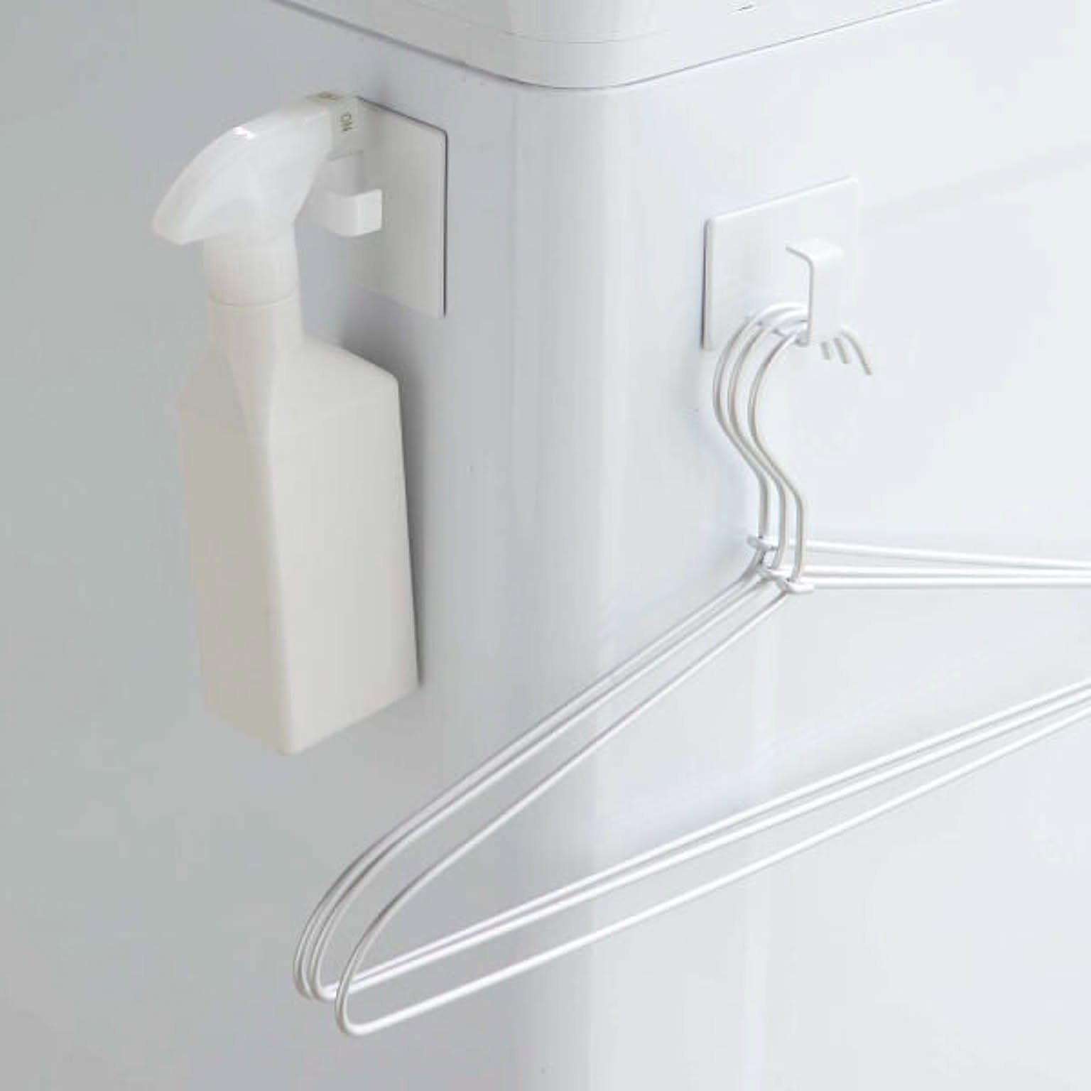 置き場に困りがちなスプレーボトルを、洗濯機横に引っ掛けて収納できます。