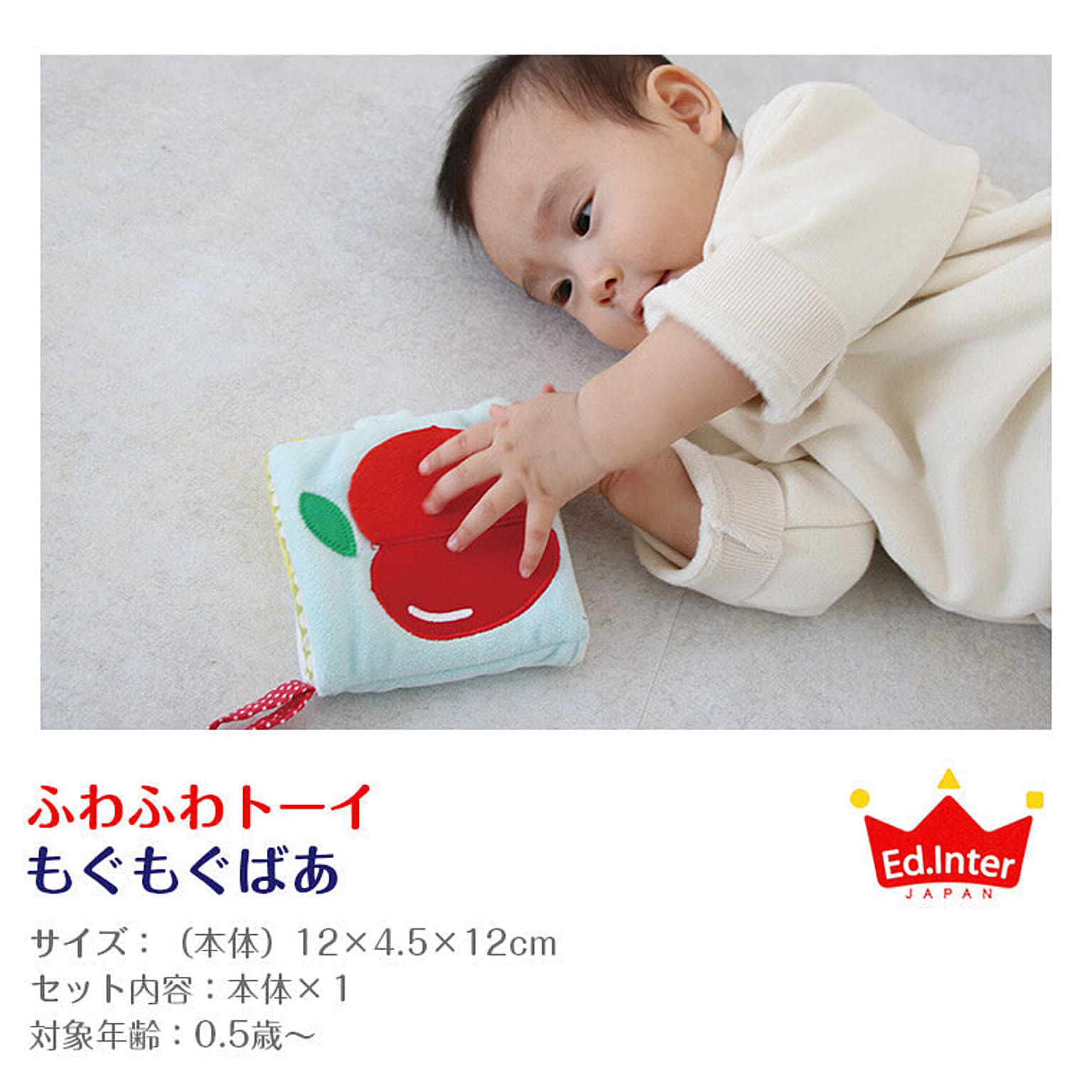 【特徴】くだものをめくるとかわいい顔が出てくる布絵本です。赤ちゃんの大好きな果物と表情を掛け合わせた布絵本になっています。にこにこぷんぷんなど、声にだして楽しく読み聞かせることができます。 【サイズ】12×4.5×12cm 【対象年齢】0.5歳~ 【セット内容】本体×1