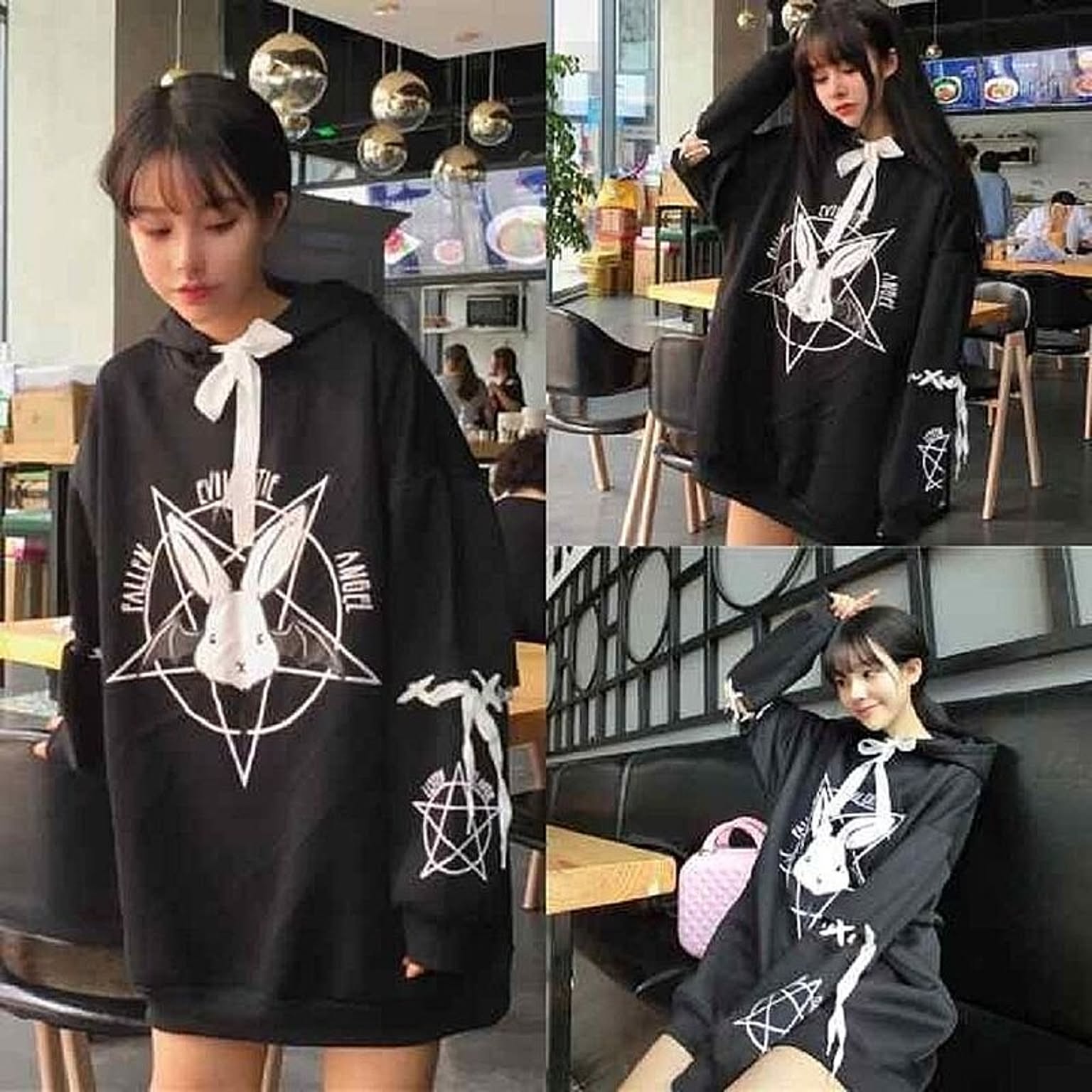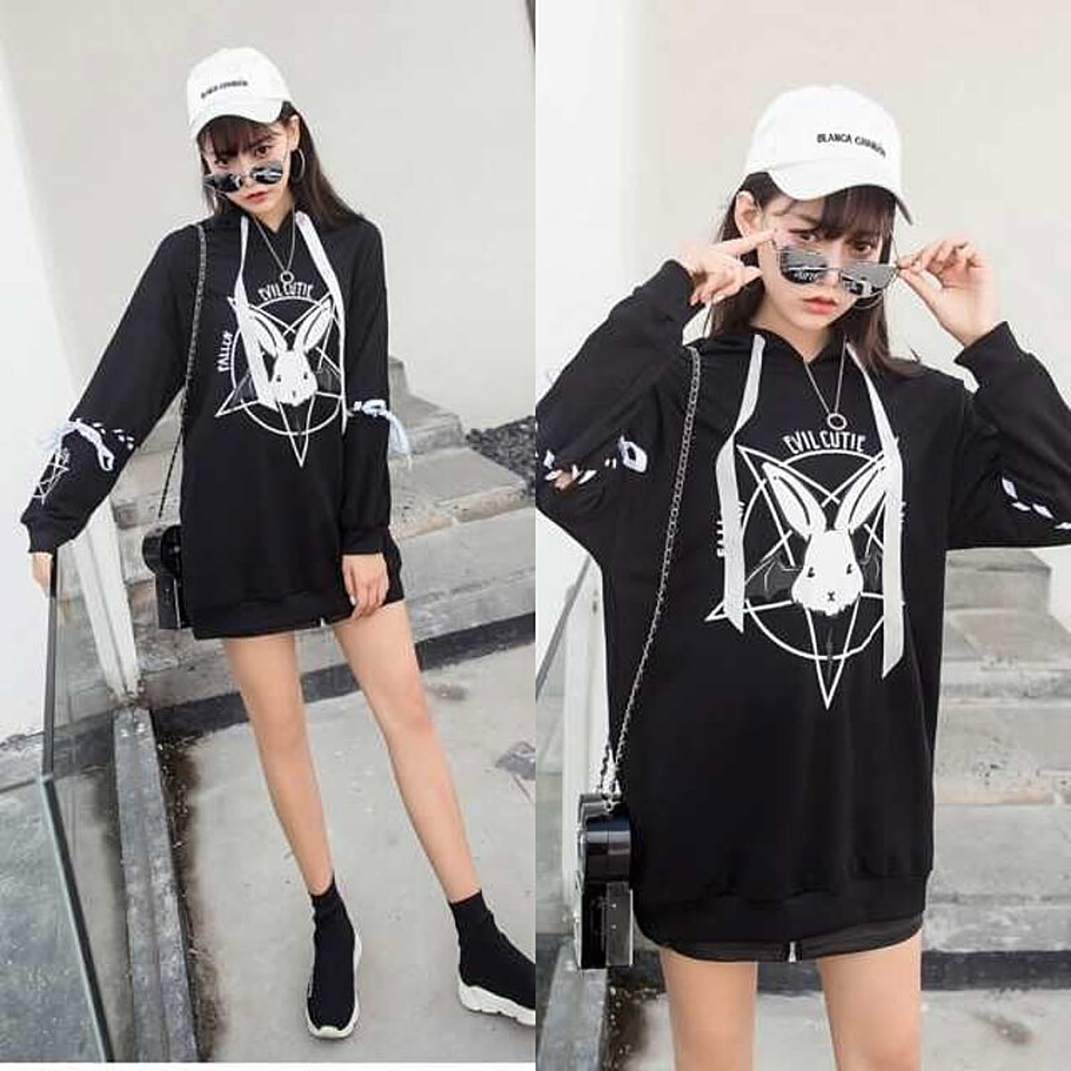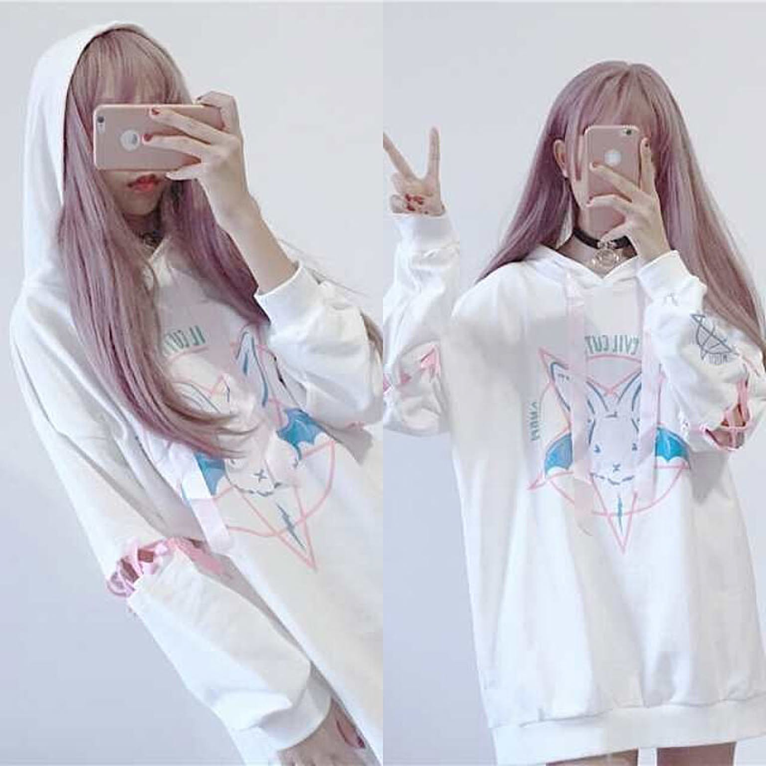 デビル 風 うさぎと 星 の プリント が かわいい ビックシルエット プルオーバー パーカー になります。