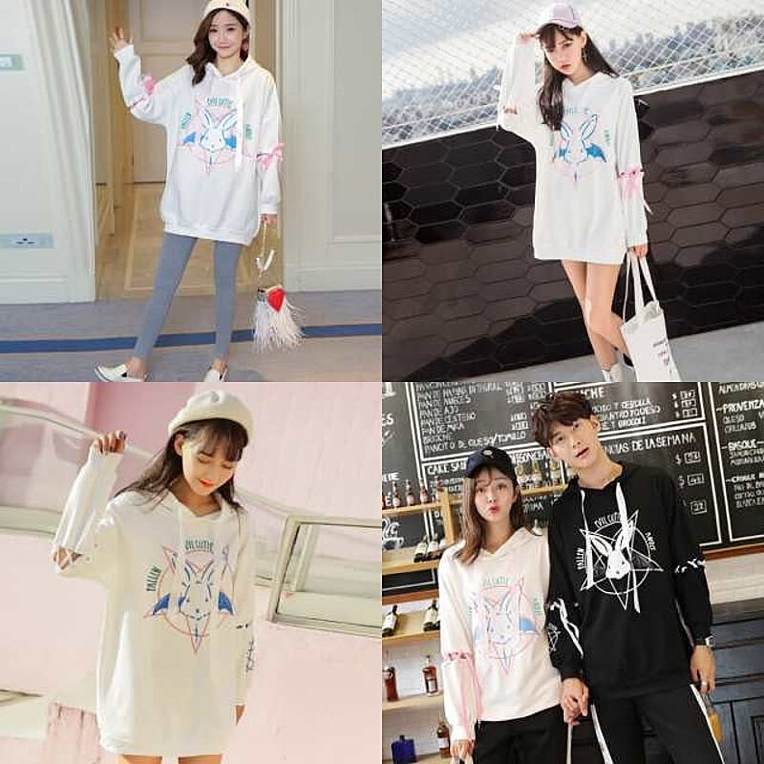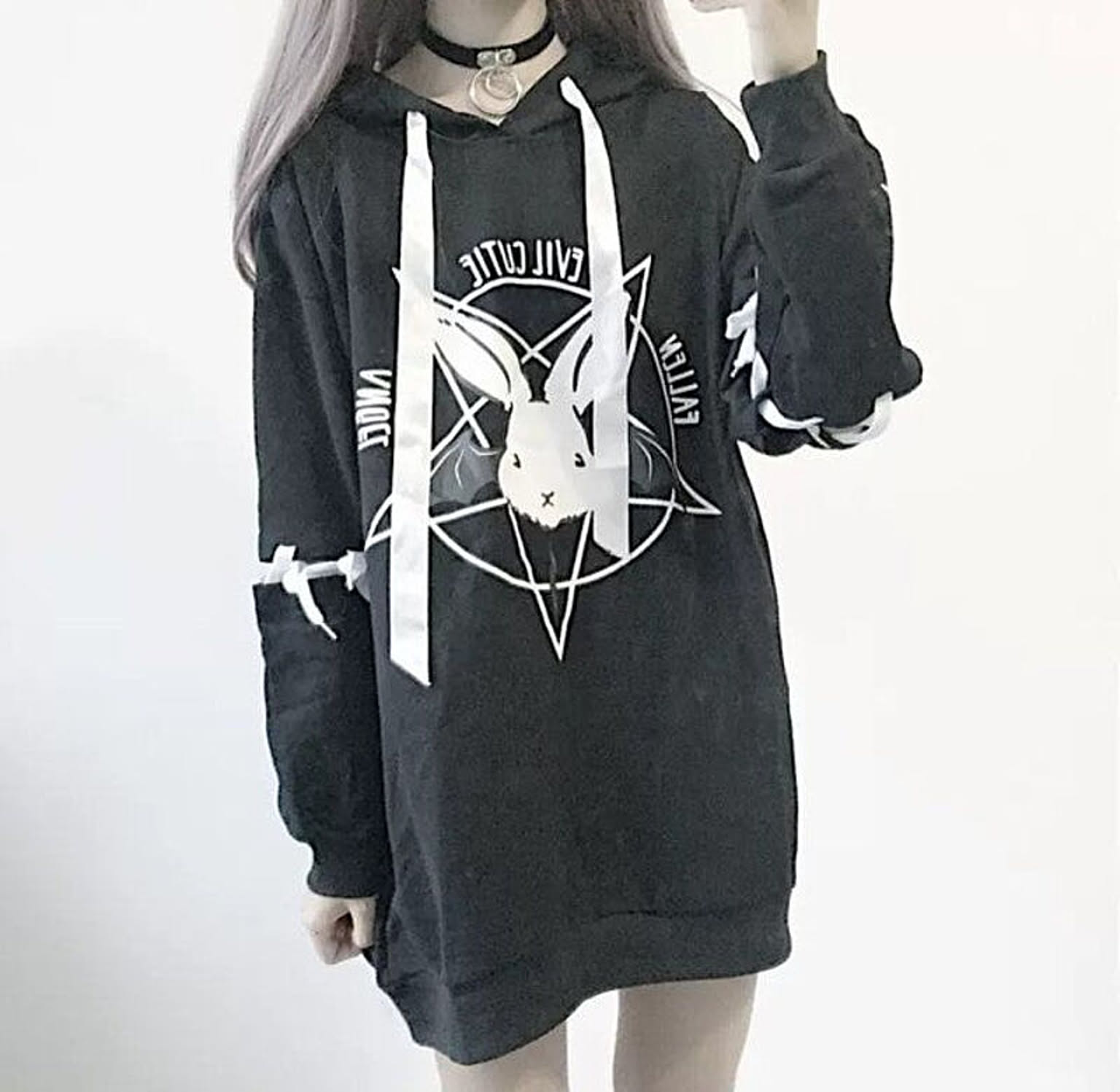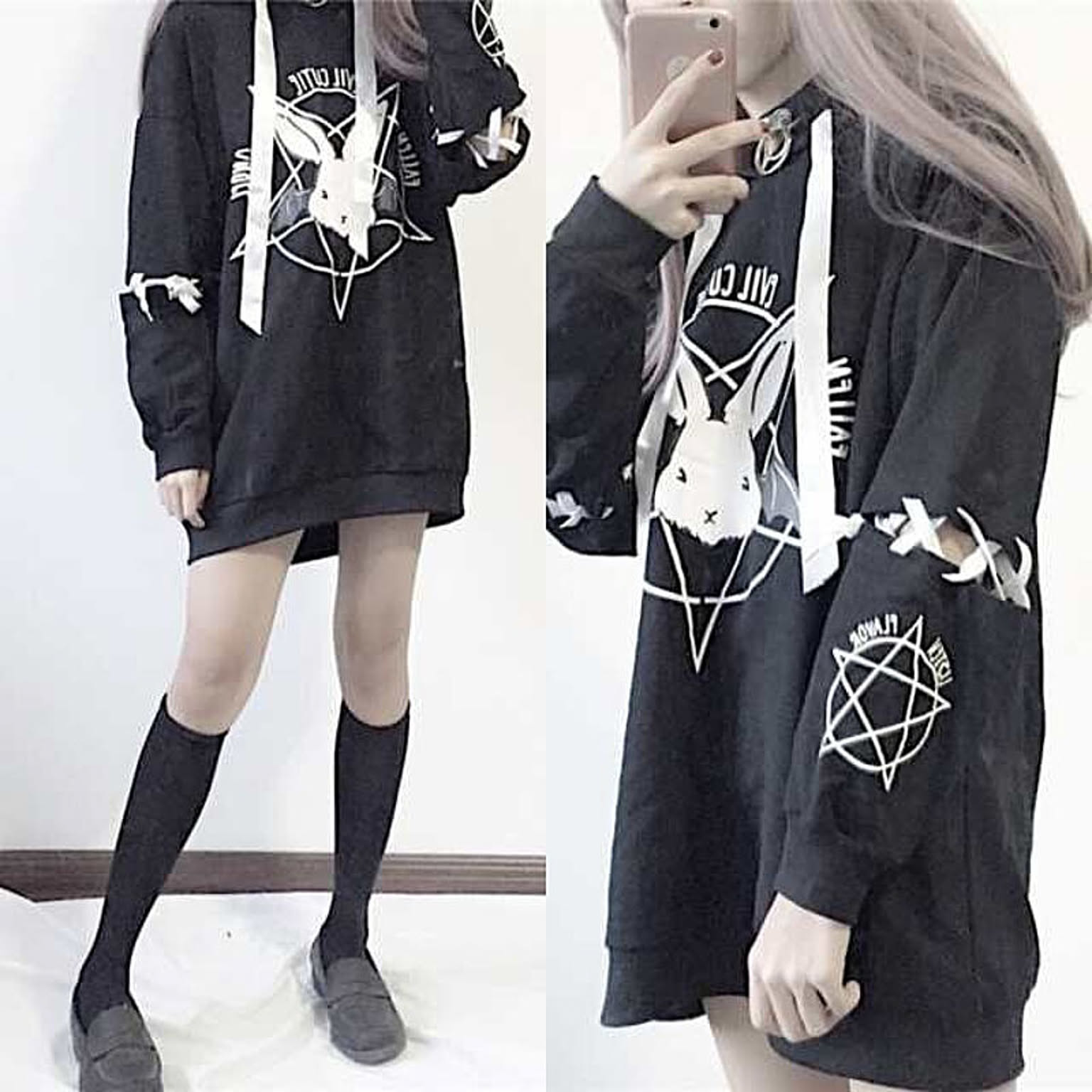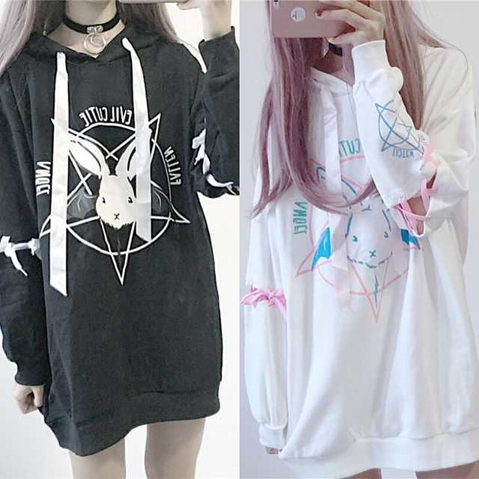 デビル 風 うさぎと 星 の プリント が かわいい ビックシルエット プルオーバー パーカー になります。