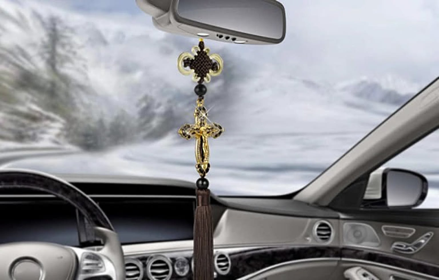 【在庫限り】ルームミラー用 イエス キリスト 十字架 クロス キラキラ カーミラー アクセサリー プレゼント 内装 飾り 雑貨 お守り
