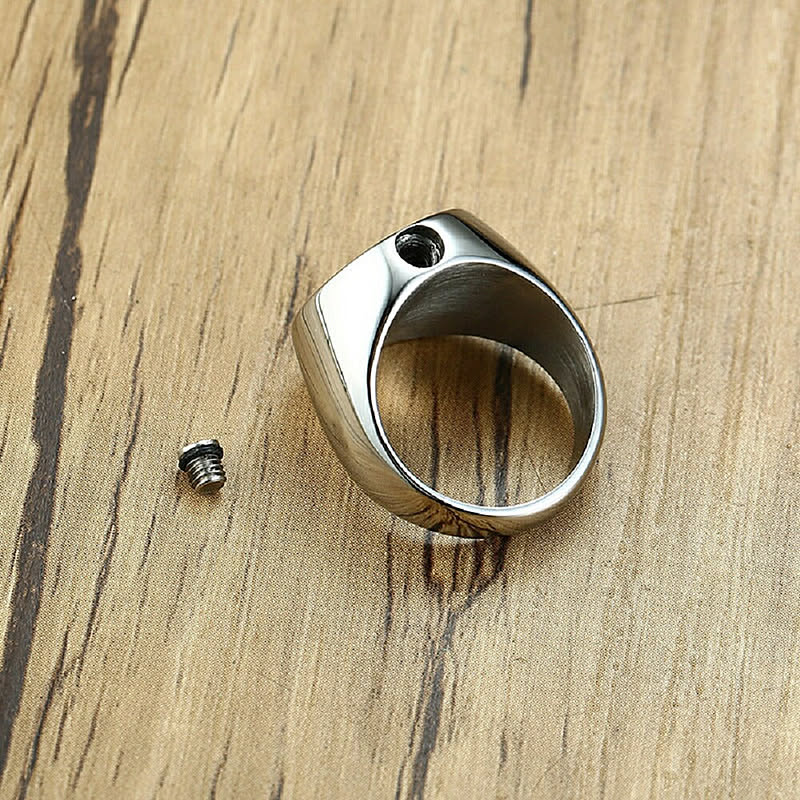指輪の本体に空洞があり、ネジで開閉