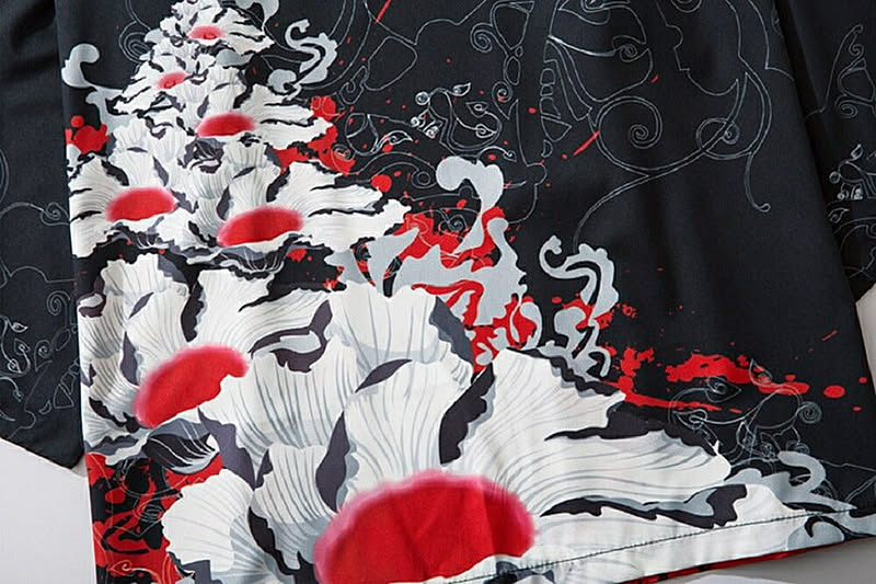 法被 昇り鯉 花 ブラック 夏祭り 夏恋 寺 韓国ファッション 神社 羽織り 半纏 はんてん ハッピ 長半纏 半天 袢天 半被 お祭り衣装 雅 和柄 羽織 和装 カーディガン 浴衣 着物 はっぴスタイル かっこいい かわいい 風物詩 和柄