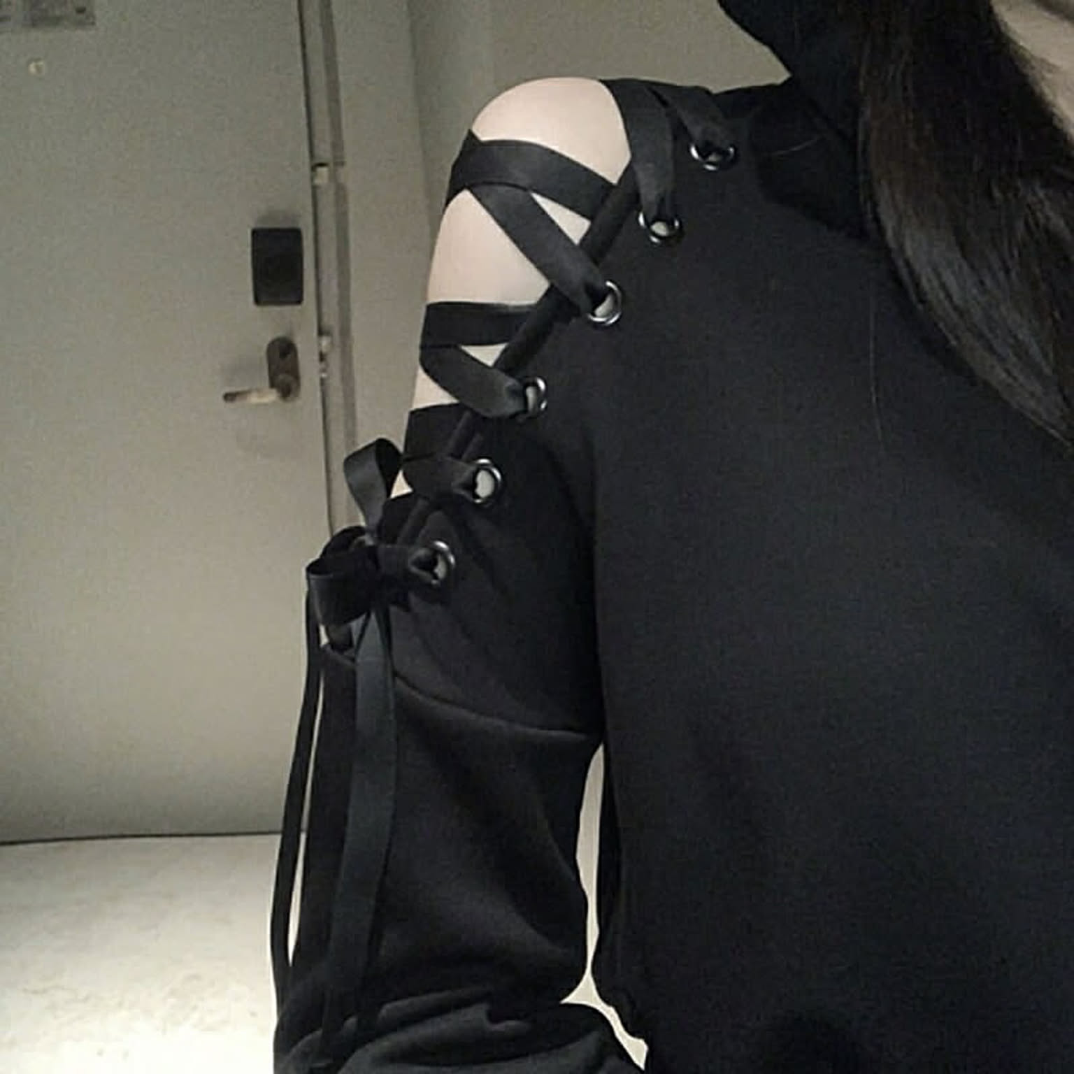 ショルダー部分のワンポイントの紐デザインがとてもクールで可愛いです