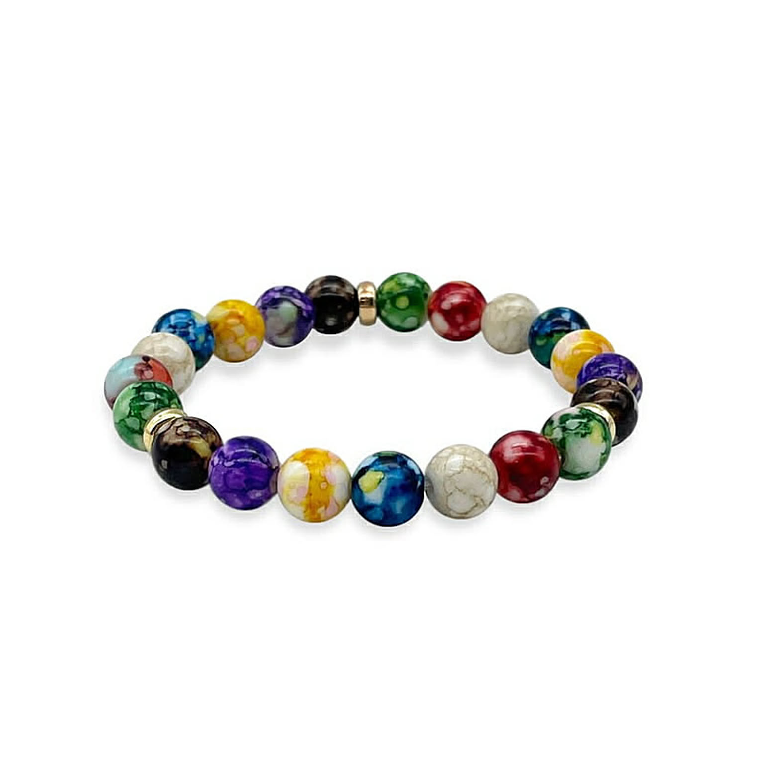 様々なカラーの石を使ったストーンブレスレットです。カラフルな輝きが全体のシャープさを引き立たせます。ファッションを引き締めてくれるアイテムです
