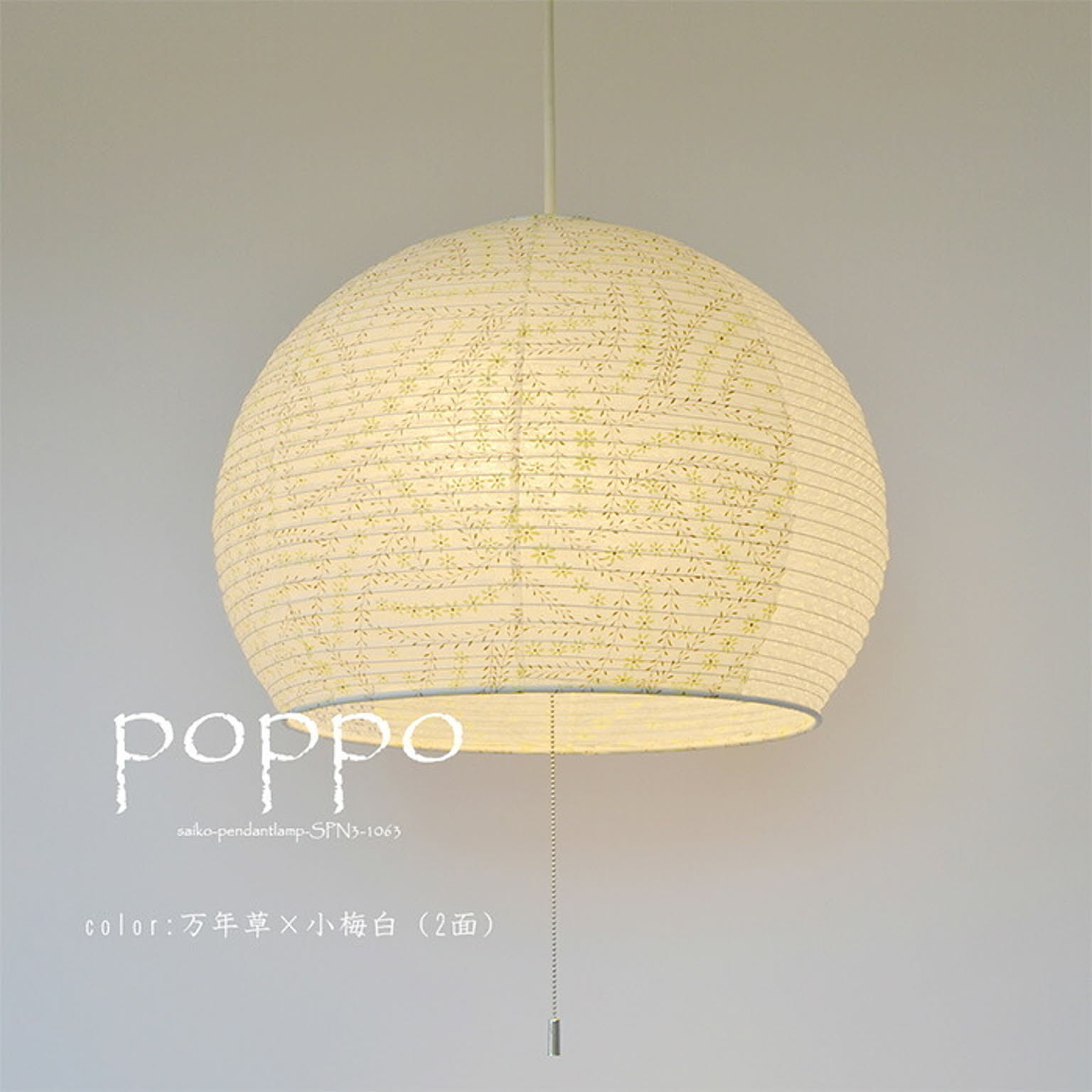 2灯 和紙 ペンダントライト poppo 万年草×小梅白 2面 電球付属なし