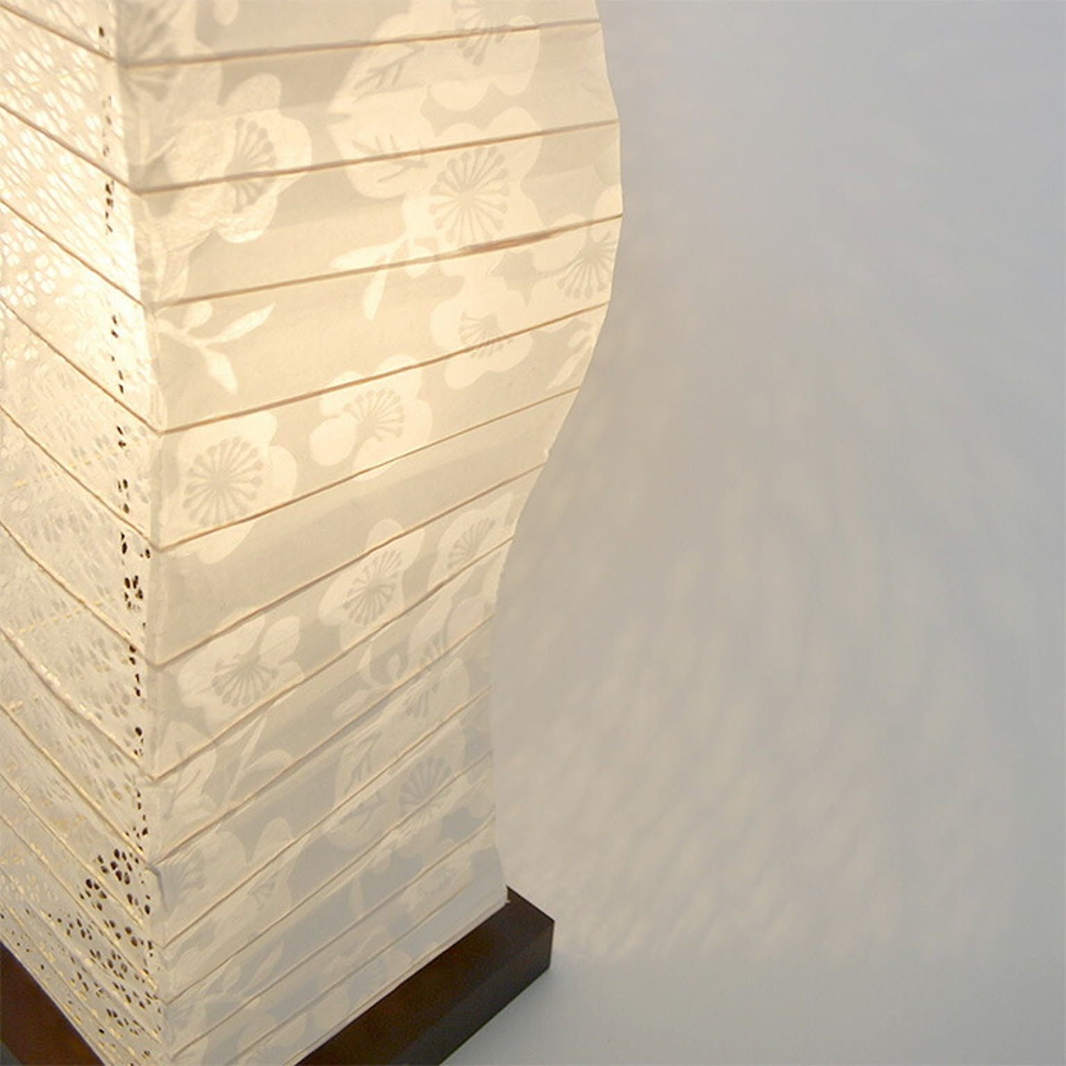 梅柄の和紙と透かし和紙の小梅柄の組み合わせ。点灯すると梅の柄が鮮やかに浮かび上がります。