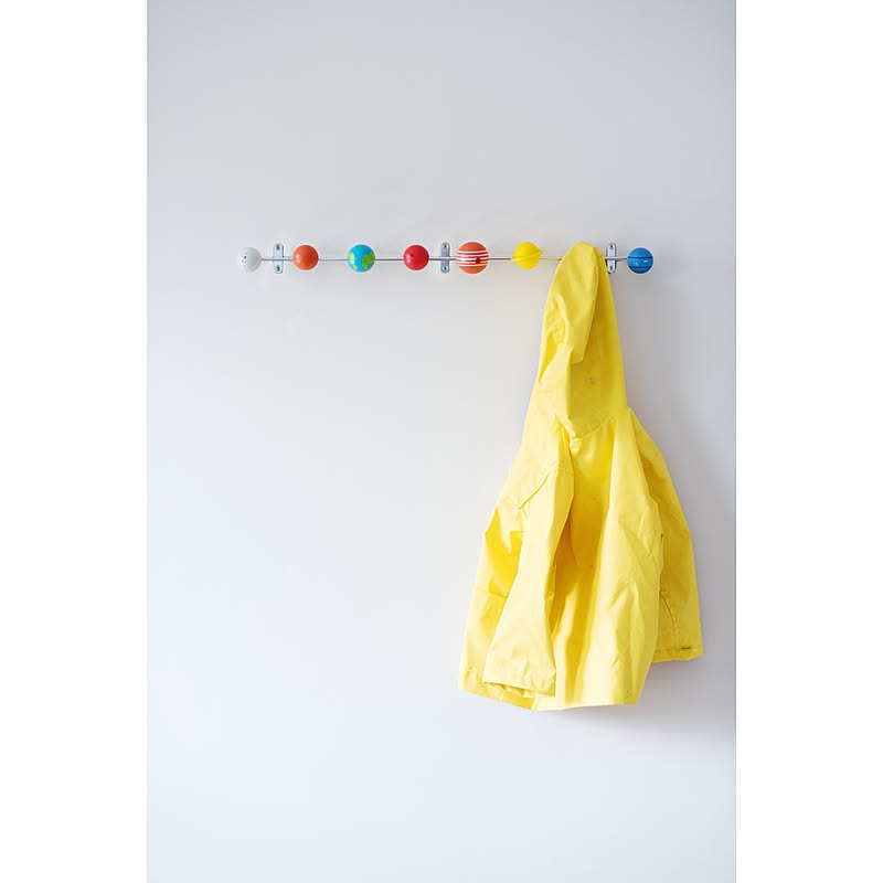 太陽系の惑星が支える、壁取り付け型のコートラックです。