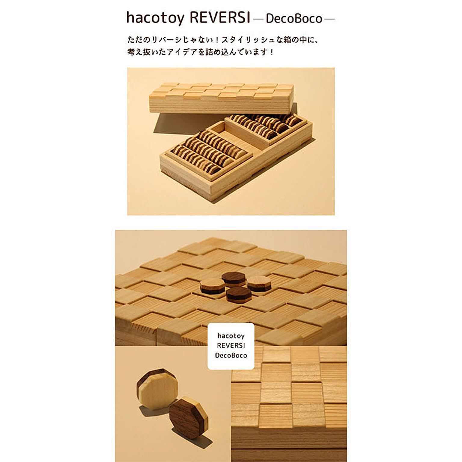 八角形のリバーシのコマは、木そのものの色を活かして白黒を表現しています。