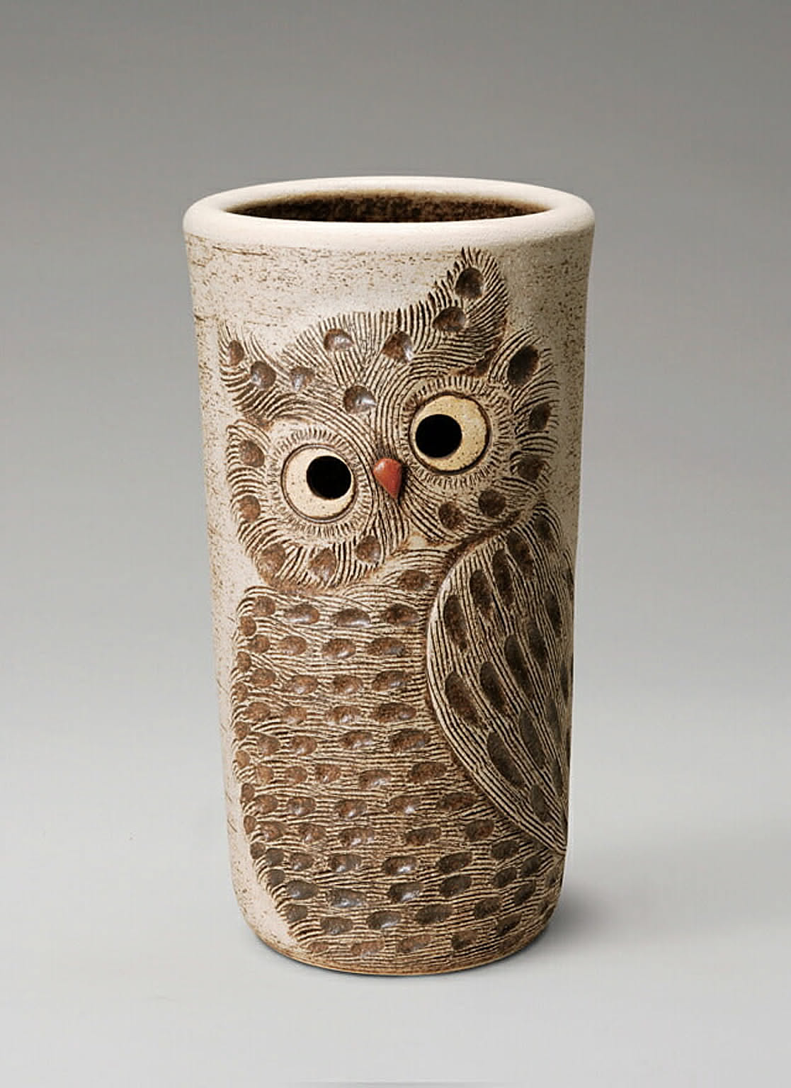 信楽焼 ふくろう彫り傘立(白)