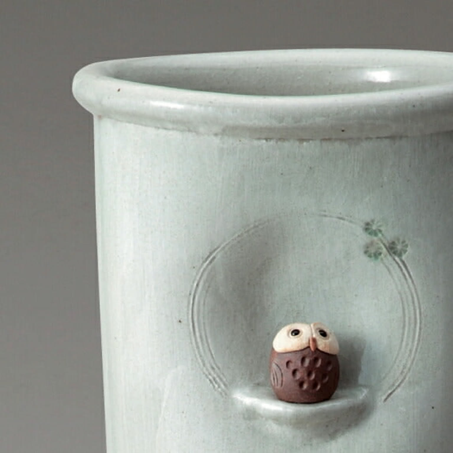 信楽特有の土味を発揮して、登窯、窖窯の焼成によって得られる温かみのある火色(緋色)の発色と自然釉によるビードロ釉と焦げの味わいに特色づけられ、土と炎が織りなす芸術として“わびさび”の趣を今に伝えている。