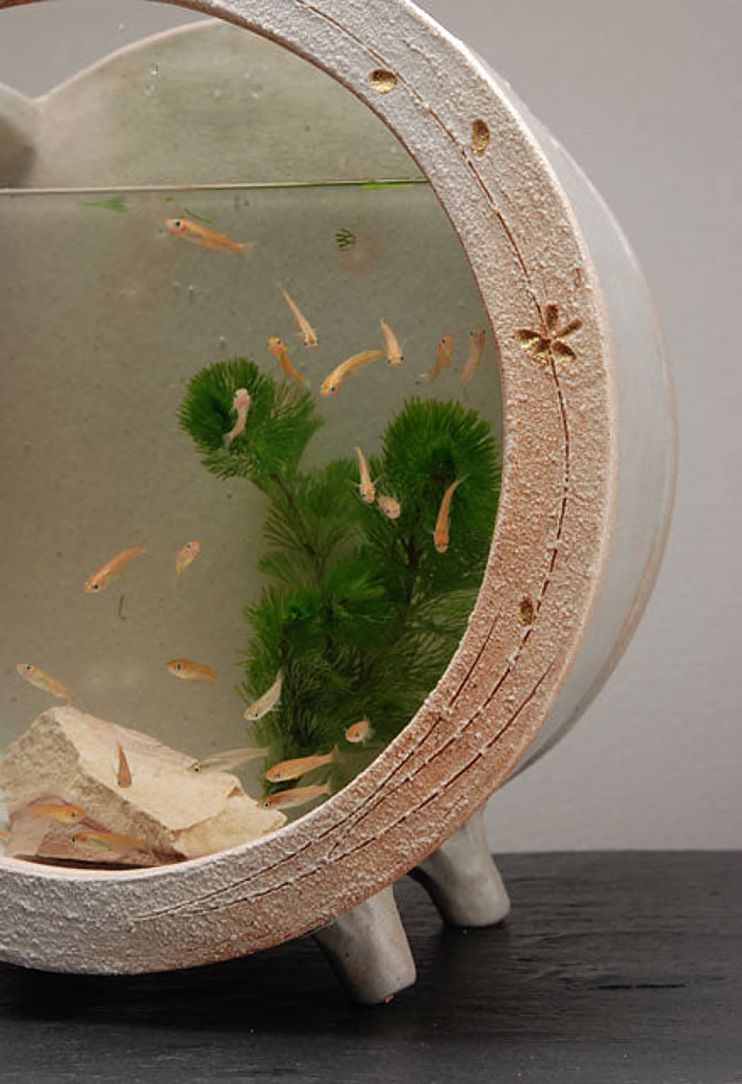 陶器独特の多孔質の性質がバクテリアの住みやすい環境をつくり、魚を飼う環境に適しています。