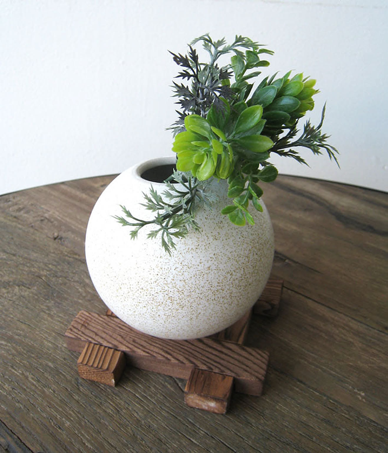 信楽焼 風水白色ボール花入(木台付き)《代引不可商品》