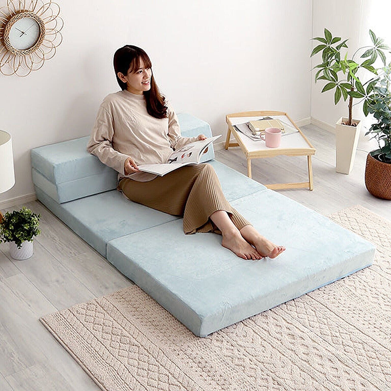 「4 Way折りたたみソファマットレスシングル【Tatin-タタン-】」は、ロータイプのソファ、マットレスなどとしてマルチにお使いいただけます。