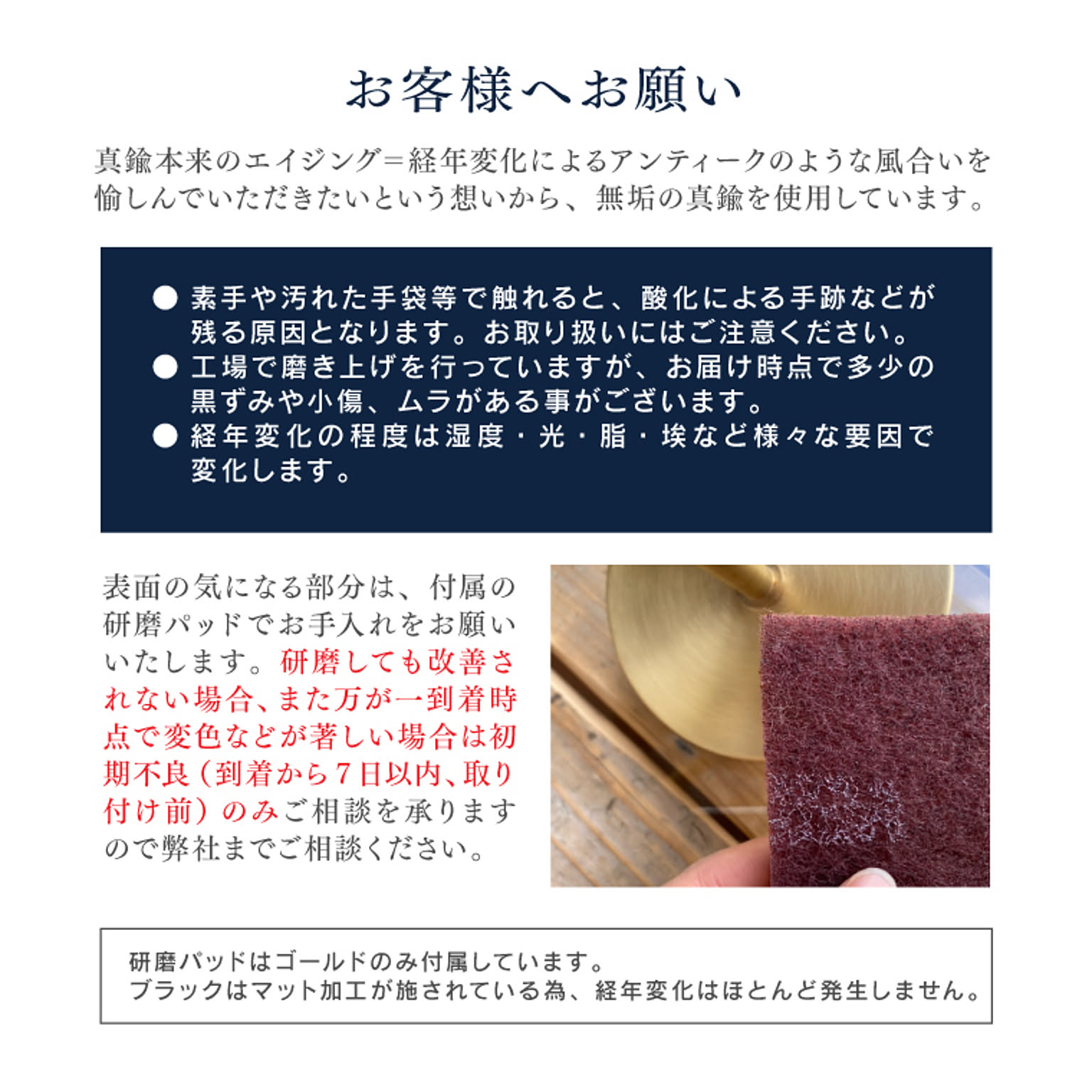 ・無垢の真鍮を熟練の職人が一つひとつ丁寧に磨き上げ