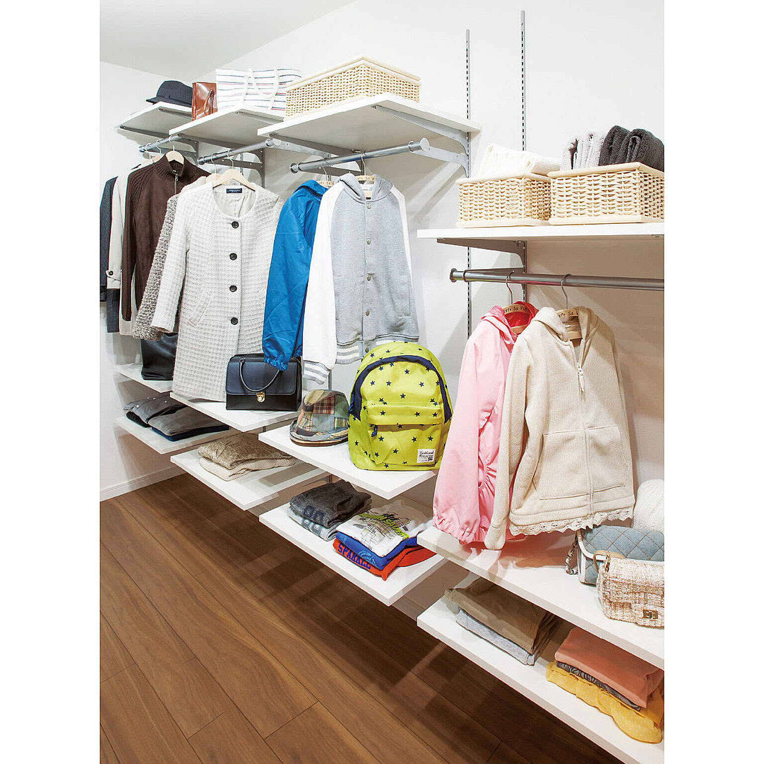 棚受(木質棚板用) 木質棚板用に専用のビスを同梱した棚受。脱落しにくく、安全性に配慮しています。 ●棚受には、木質棚板用と樹脂棚板用の2種類があります。 ●使用する棚板は、棚受の奥行タイプと同じ奥行サイズをお選びください。 セット内容 ・棚受×左右各1本 ・中間棚受 1本 ・ビスL=16×6本