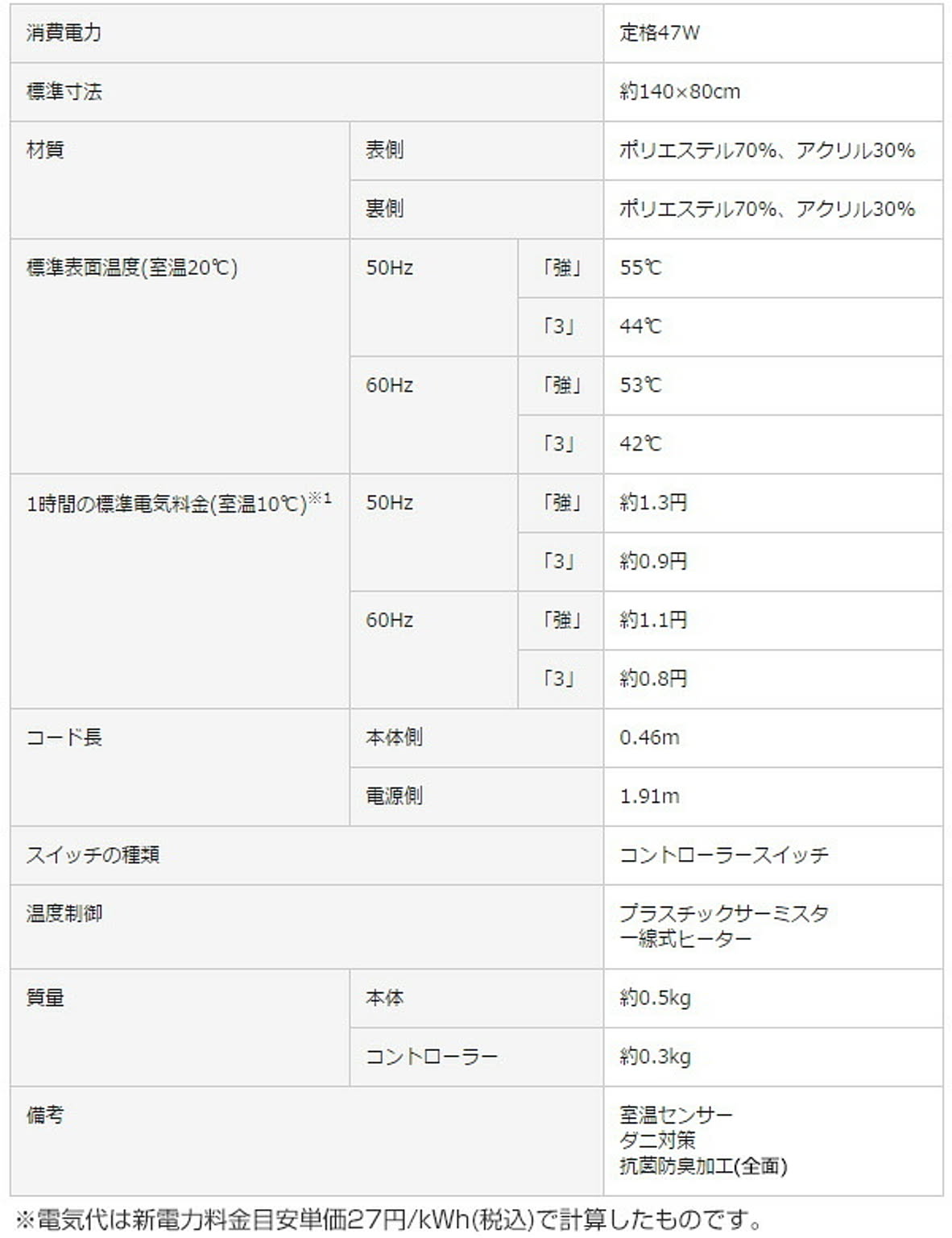 ・1時間あたりの電気代目安:約0.9円