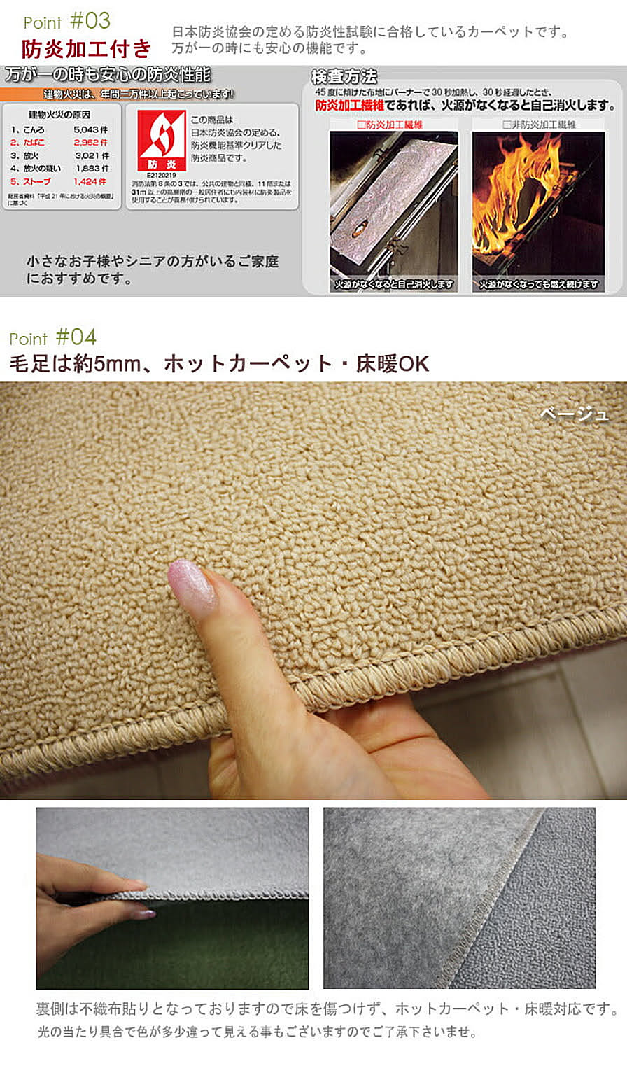 ◆機能:防炎、防ダニ、抗菌、ホットカーペット・床暖対応