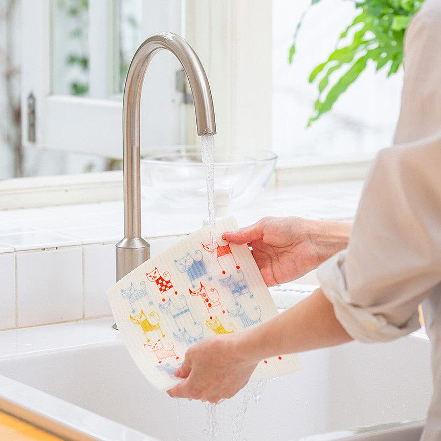 セルロースは、水を含ませてあげると、柔らかくなり、水分をもっと吸うようになります。なので、キッチンに立ったらまずは、スポンジワイプを濡らして軽く絞る!これが、台所仕事の新しいルーティンになりそうです。