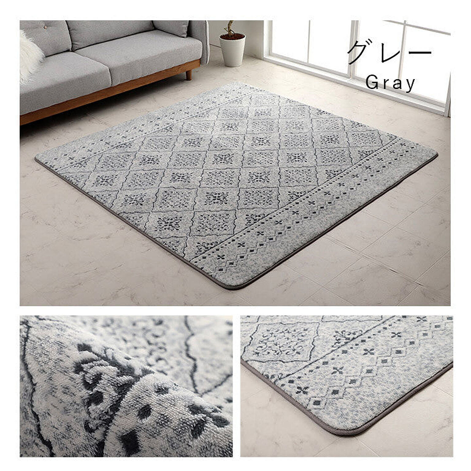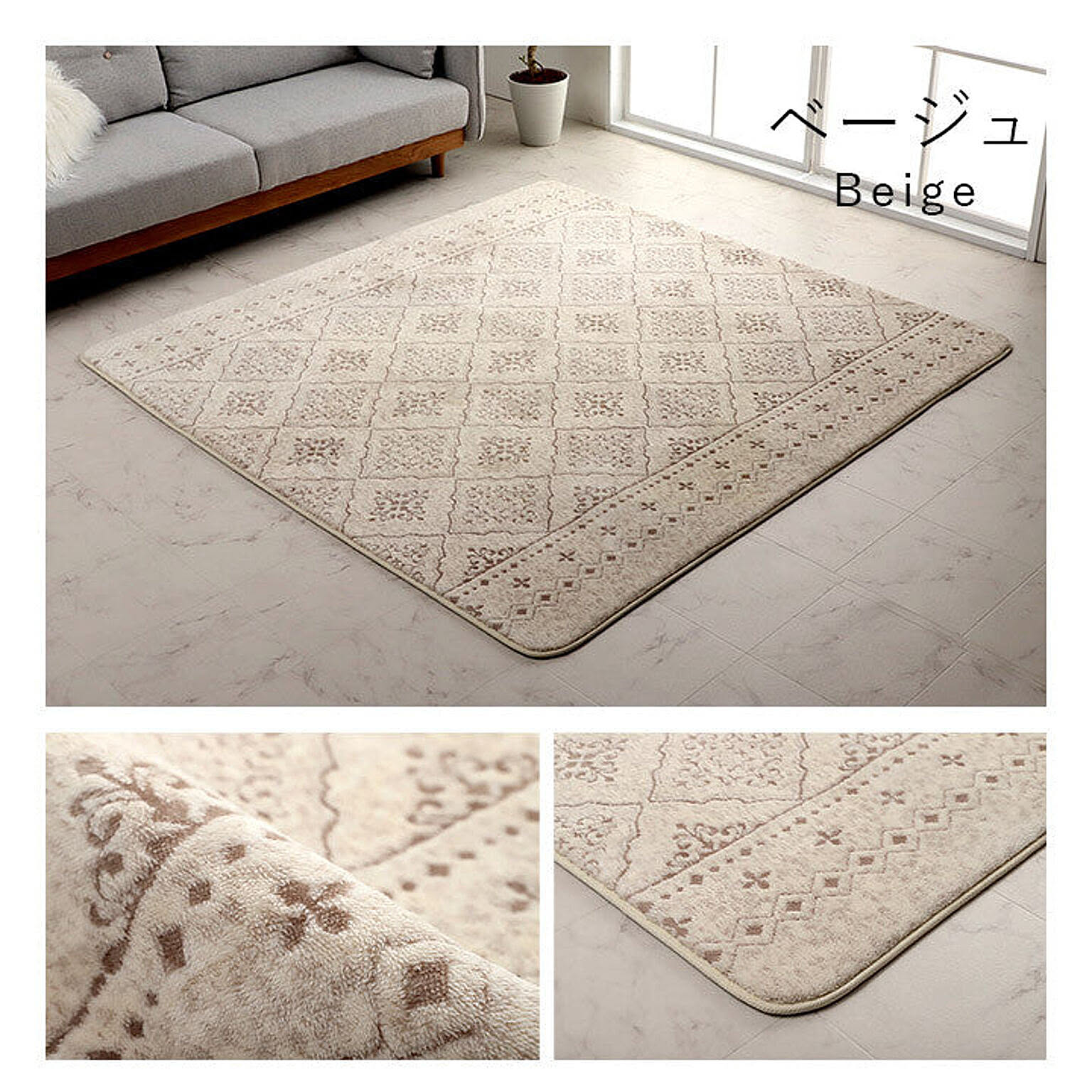 ■ ジャガード織で柄の凹凸を表現した高級感のあるデザイン。モロッカンテイストのおしゃれなラグです。