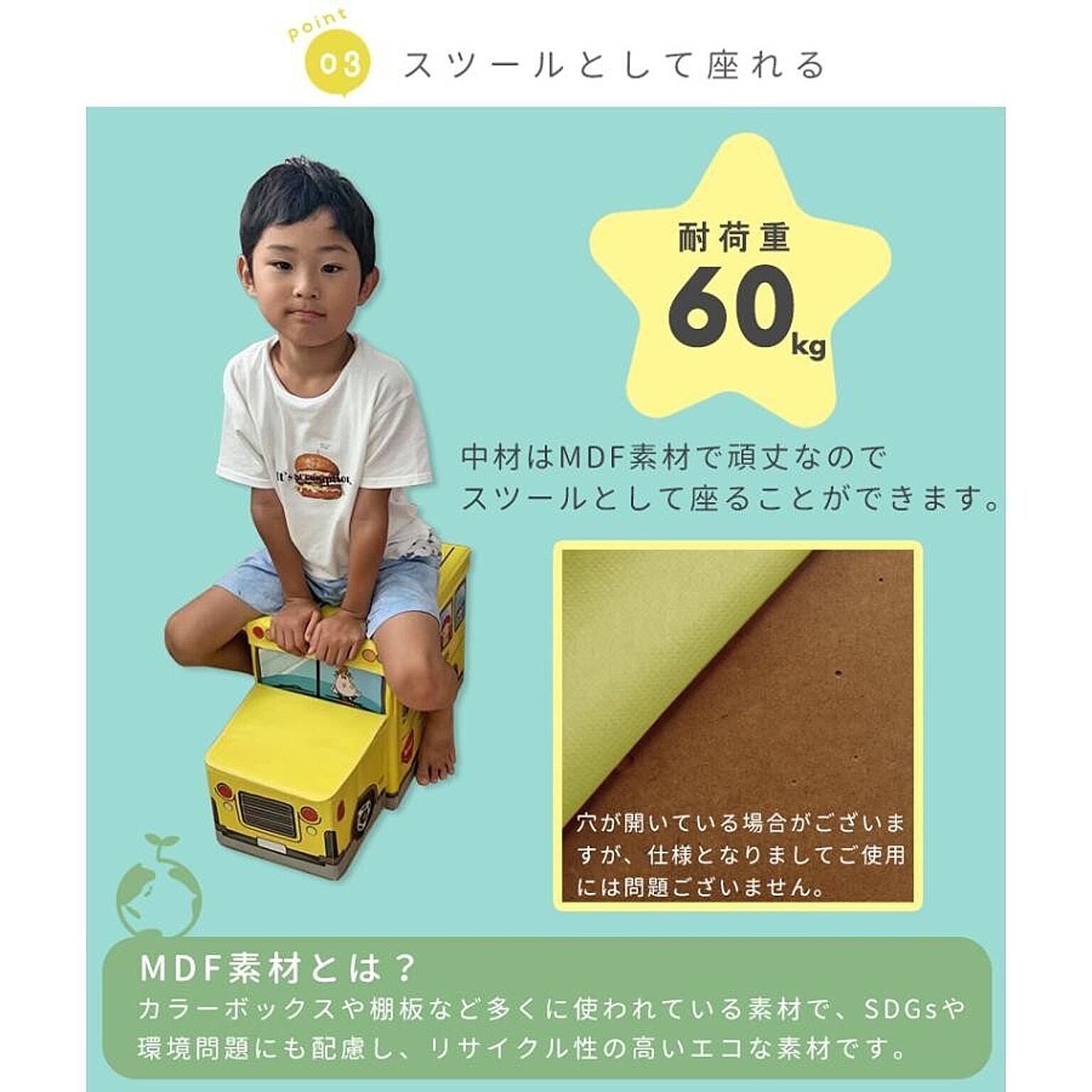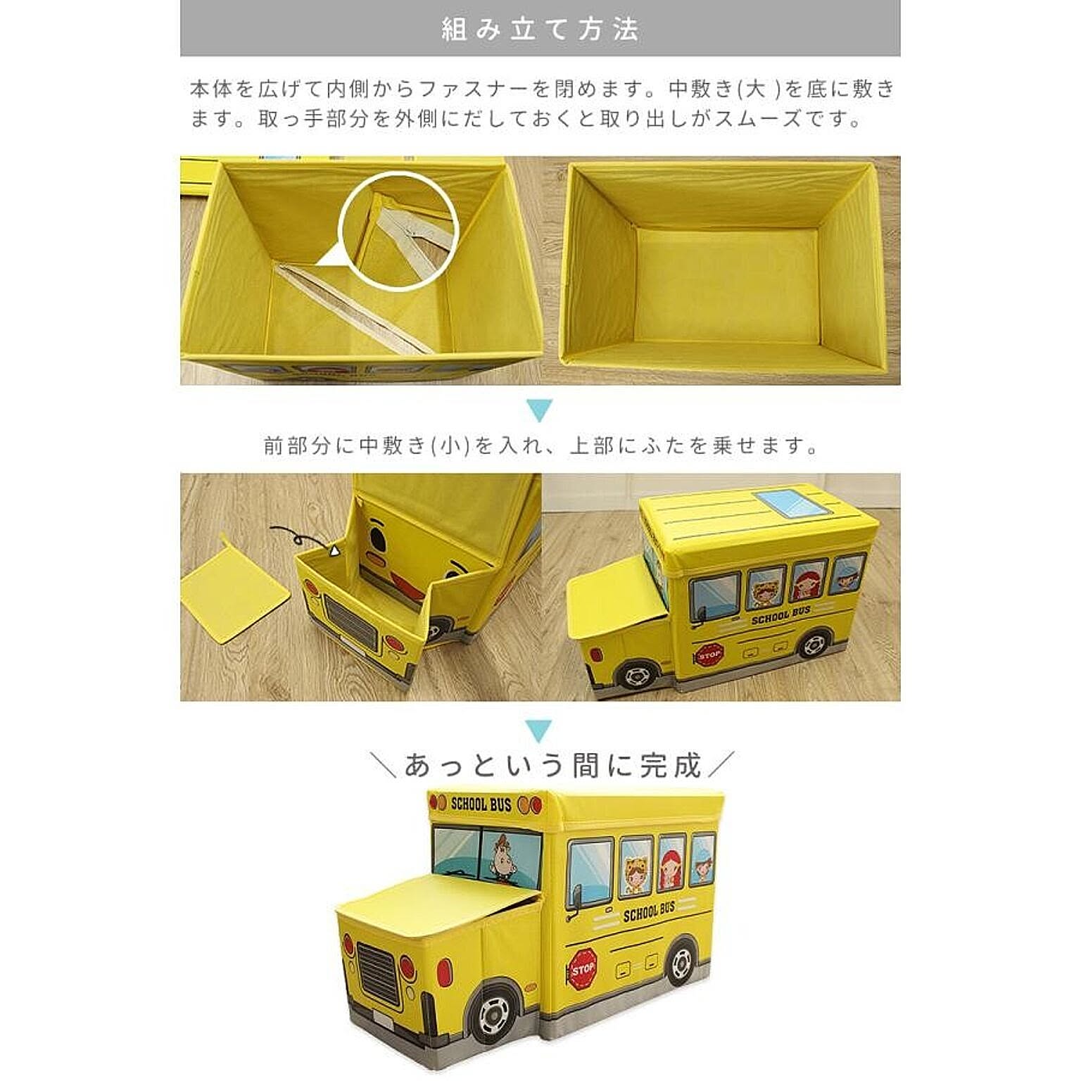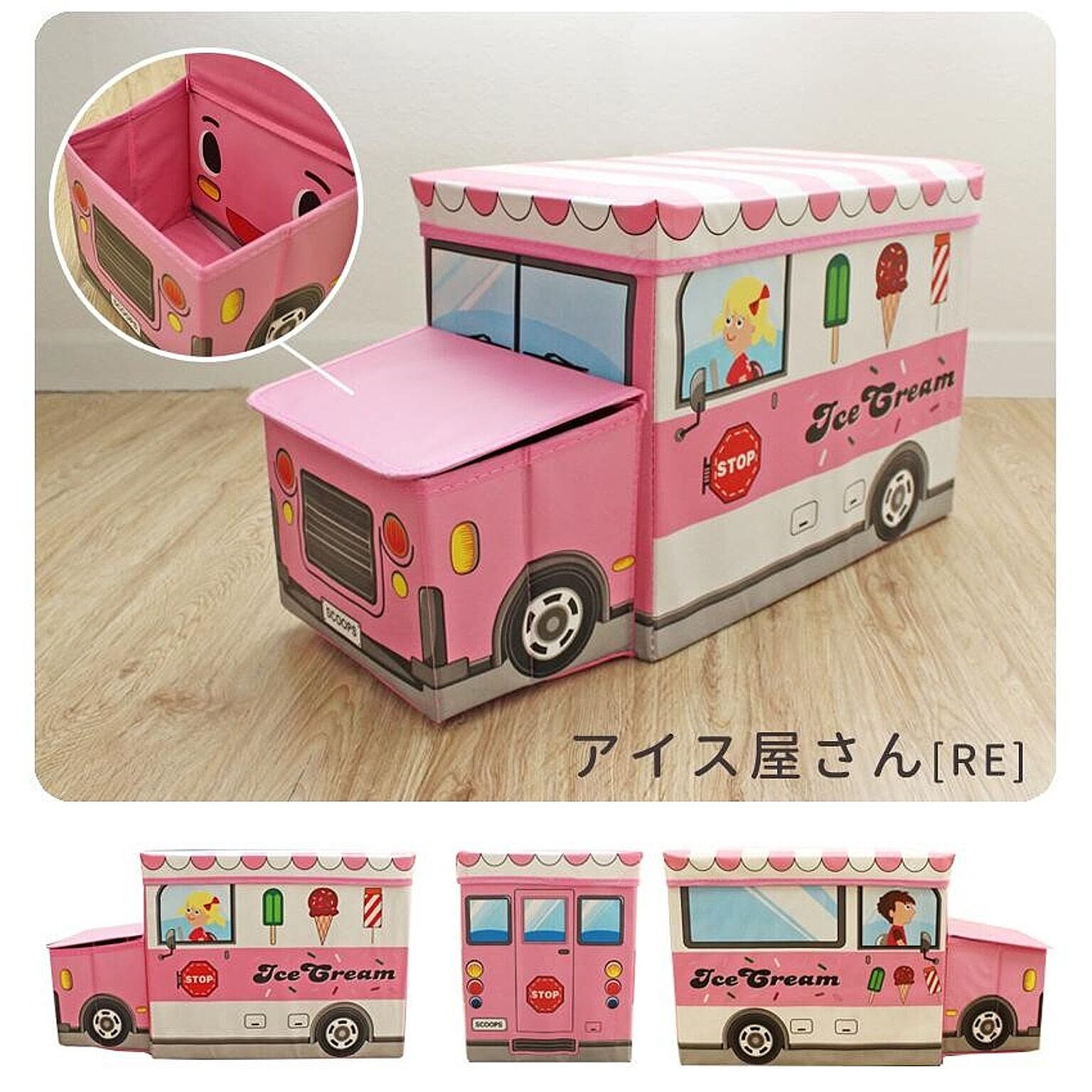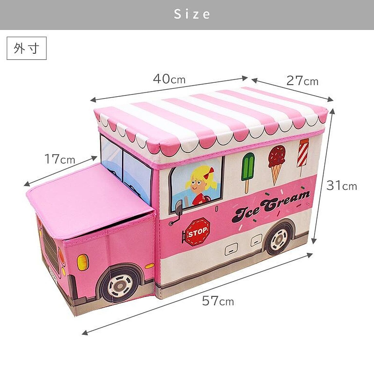 遊べるおもちゃ箱で楽しみながらお片付け サイズ:約57×27×31cm 【ふた】 外側:ポリエステル 中材:MDF 内側:不織布 【本体】 外側:ポリエステル 中材:MDF 内側:不織布 重量 約1.35kg 耐荷重 約60kg 製造国 中国製 収納 スツール ベンチ BOXスツール おもちゃ ソファー イス おもちゃボックス 送料無料 ポリス 警察 バス アイスクリーム 遊べる 折り畳み 黄色 青 紺 ピンク かわいい おもちゃ入れ 収納ボックス おもちゃ収納