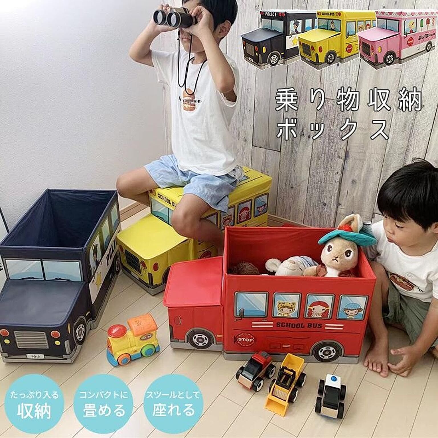 【乗り物収納ボックス】 おもちゃ箱 おもちゃ収納 乗り物 収納スツール 収納ボックス フタ付き おしゃれ 折りたたみ チェア 椅子 収納BOX スツール ボックススツール
