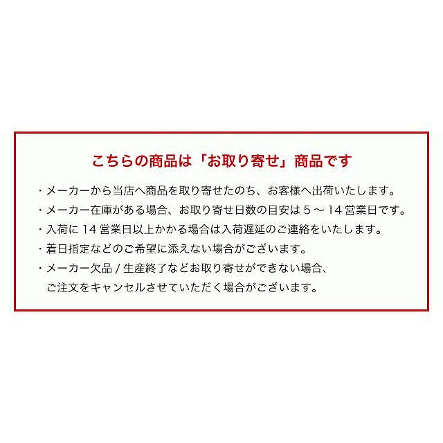 ・在庫があるものに関しては、原則1~2週間前後でのお届けとなります。 ・商品を2種類以上ご注文いただいた場合、商品のお届けが別々になる事がございます。 ・一部お取り扱いできない地域がございます。その場合はご注文はキャンセルとさせていただきます。 ・沖縄県・離島等地域への配送をお受けできません。当店にてご注文確認後にご注文はキャンセルとさせていただきます。 ・商品出荷後のキャンセルはお承りできません。 ▼当サイトの掲載商品について 商品のデザイン、仕様、外観、価格を予告なく変更する場合や取扱いを中止する場合もございますのでご了承ください。