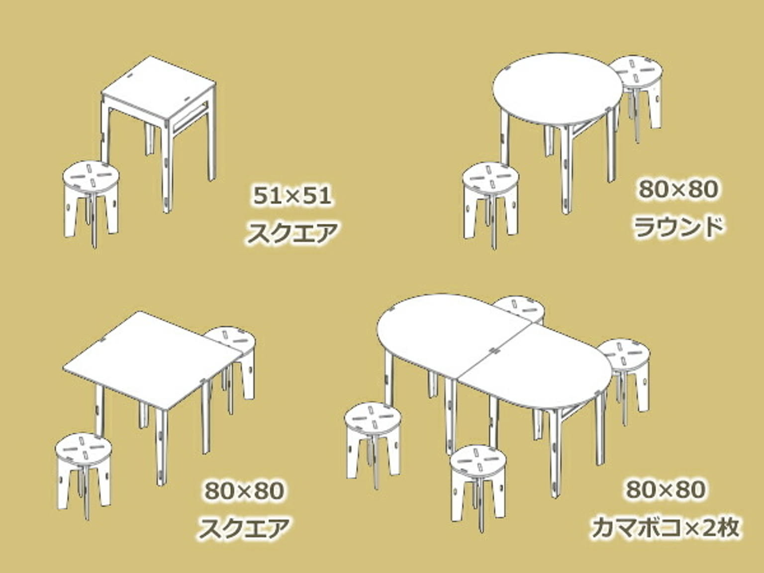 510×510のスクエアはコンパクトなので一人用のデスクとしてもちょうどいい大きさです。