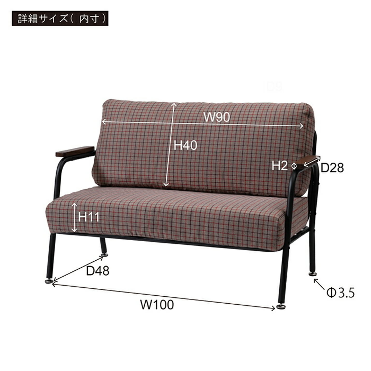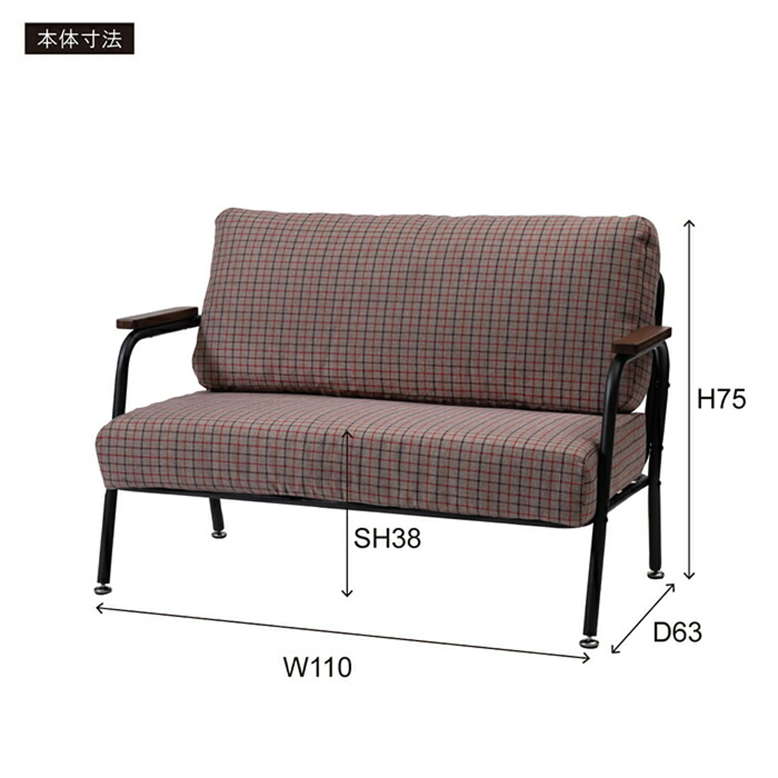 ソファ 2人掛け 組立式 RKC-101 幅110x奥行63x高さ75cm 東谷