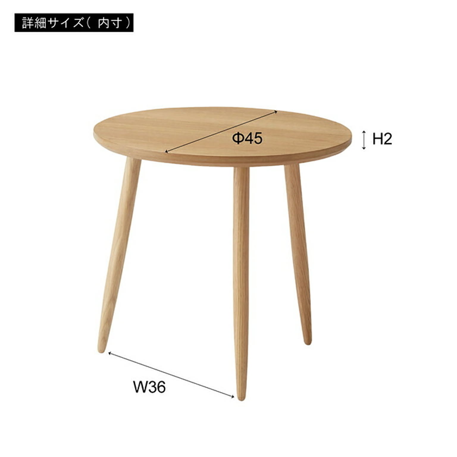 木目が美しいホワイトオークを使用しています。シンプルで細い三本の脚がテーブル全体をコンパクトに、足元をすっきりと広くみせてくれます。
