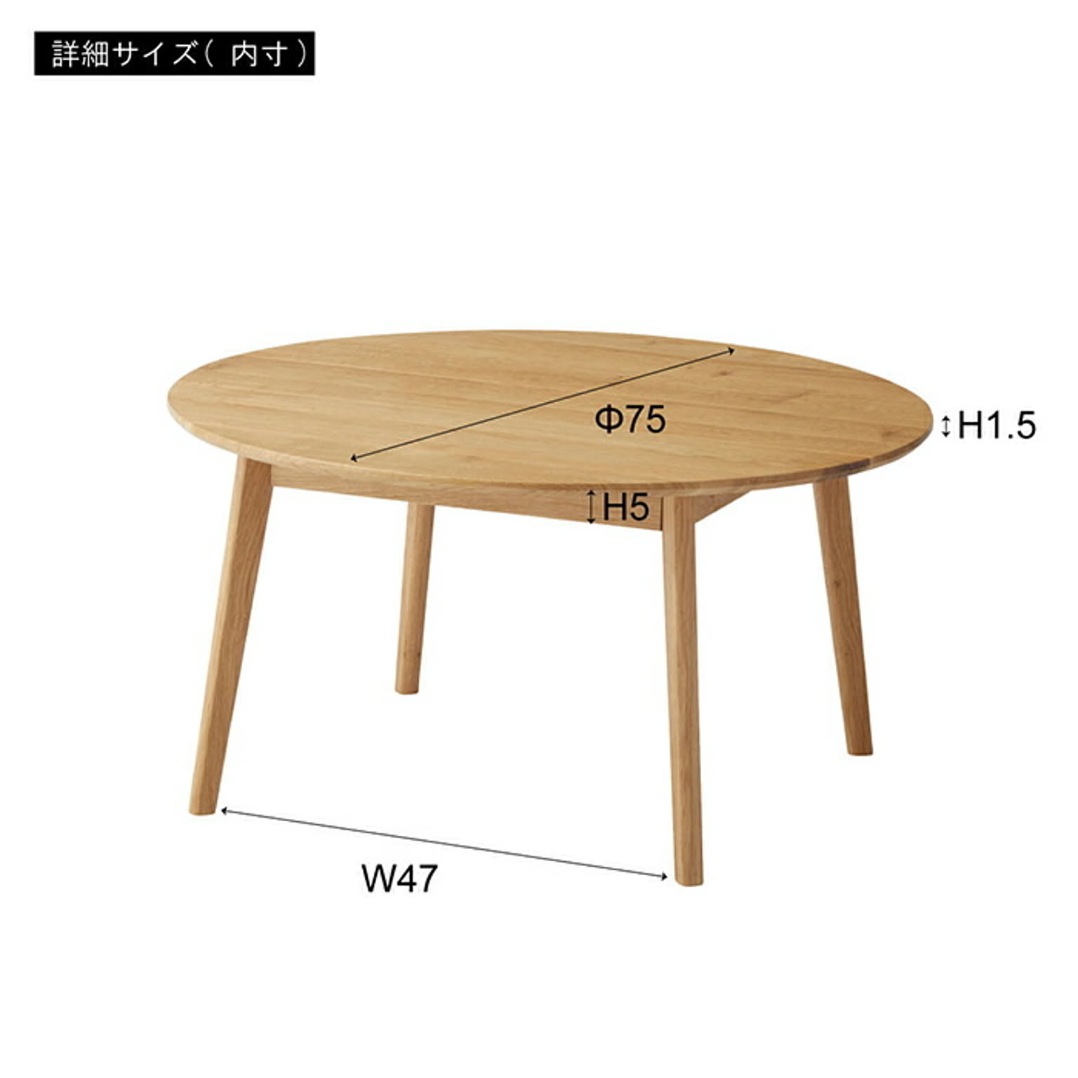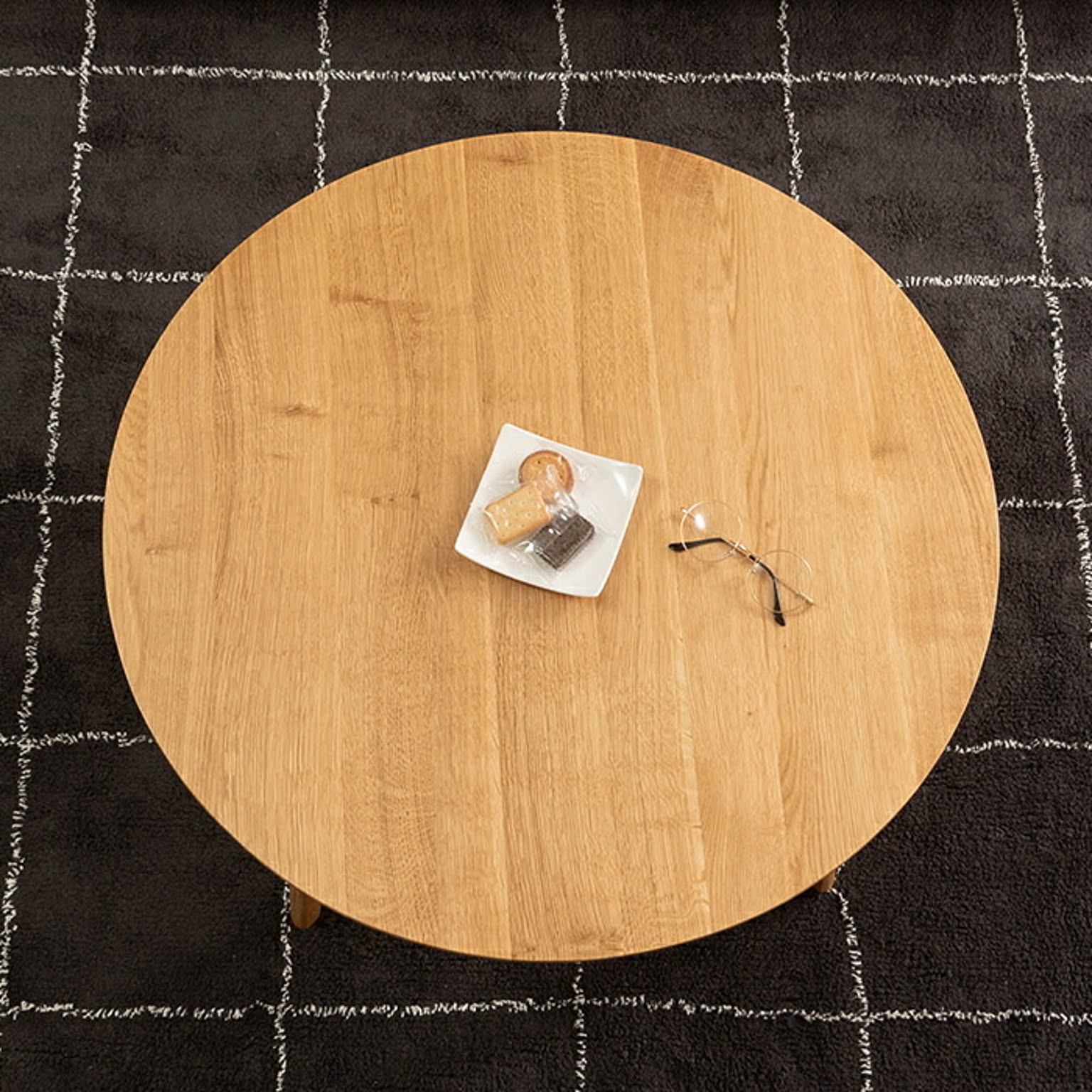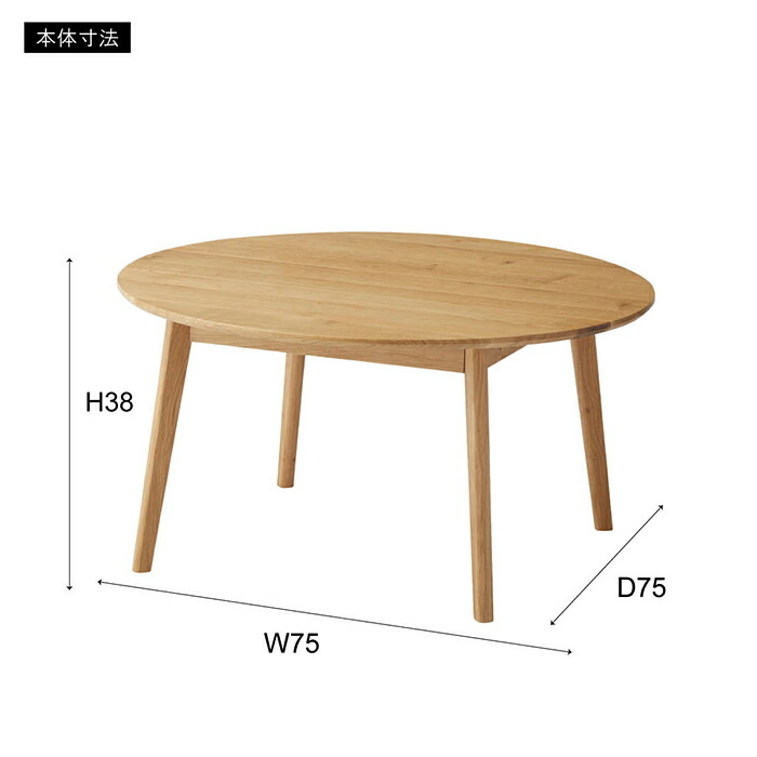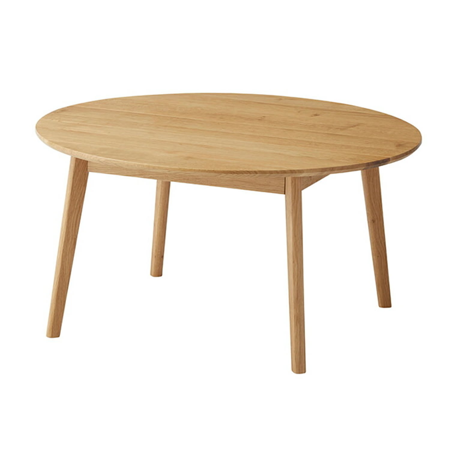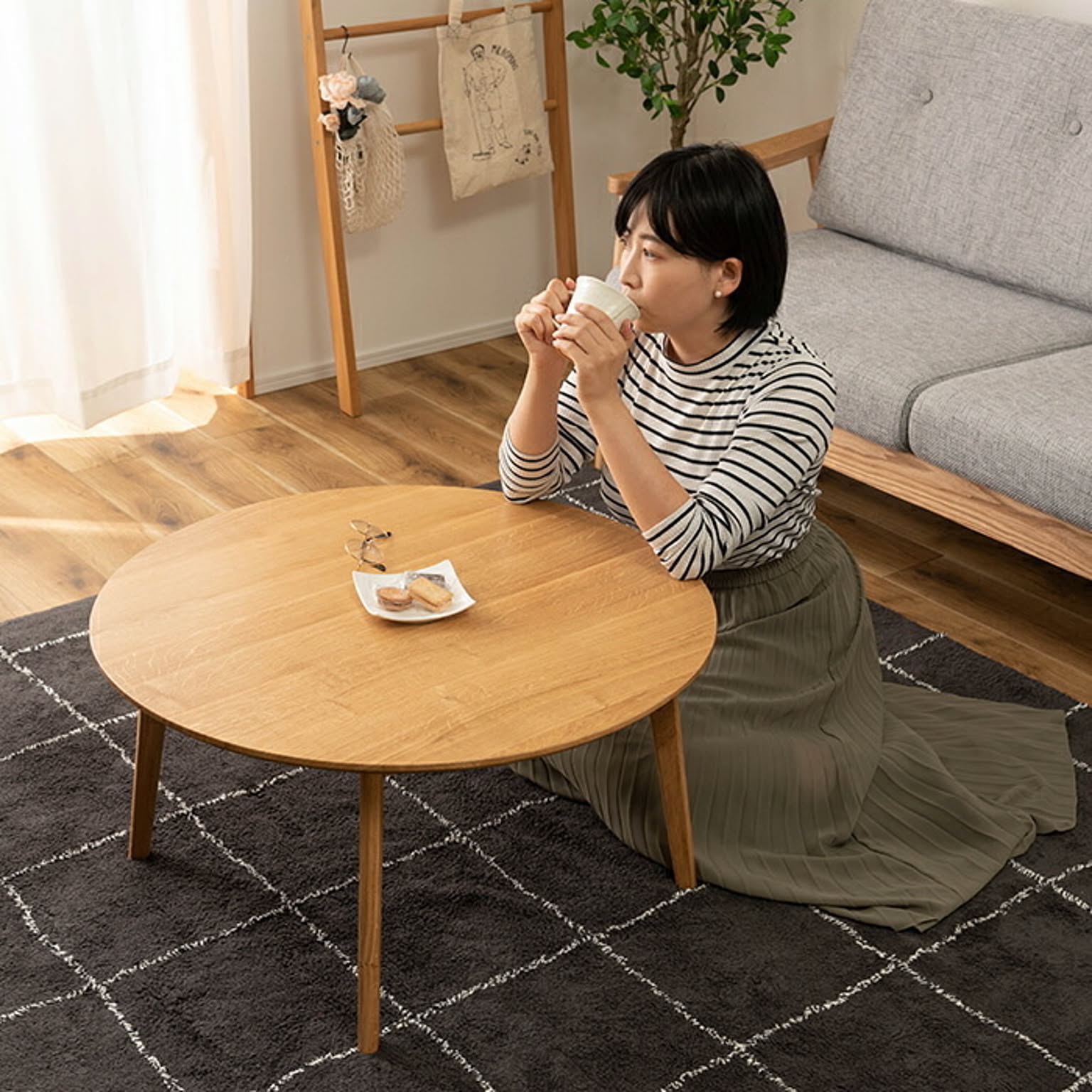 シンプルで使いやすいラウンドテーブル。角がなくどこからでも座ることのできる丸い形は、おしゃれなローテーブルとしてぴったり。1人で使用しても2人以上で使用しても余裕のある天板の大きさです。